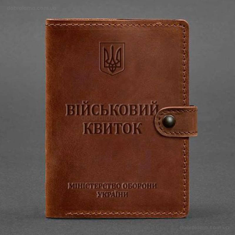 Шкіряна обкладинка-портмоне для військового квитка спеціально розроблена для дбайливого зберігання документа. Зшита із високоякісної натуральної шкіри crazy horse з вінтажною матовою поверхнею. Шкіра crazy horse має вінтажний ефект, вона досить міцна і довговічна.