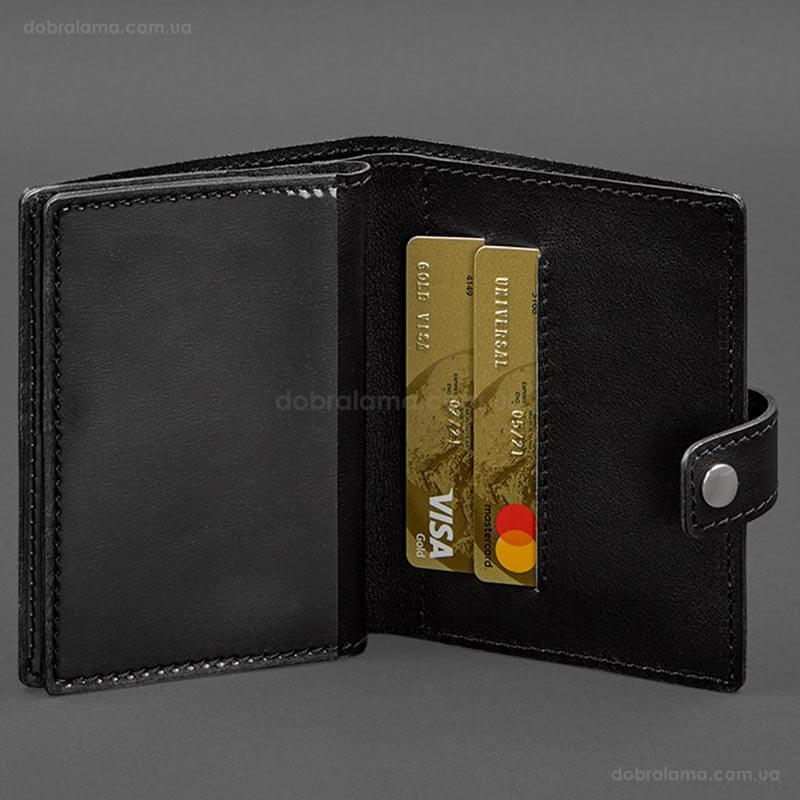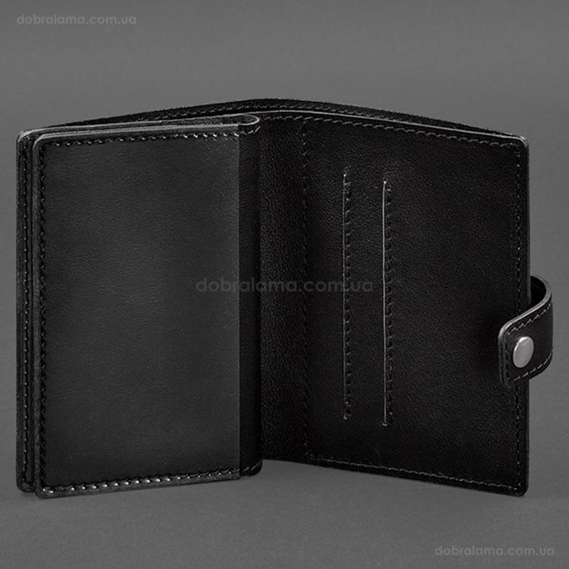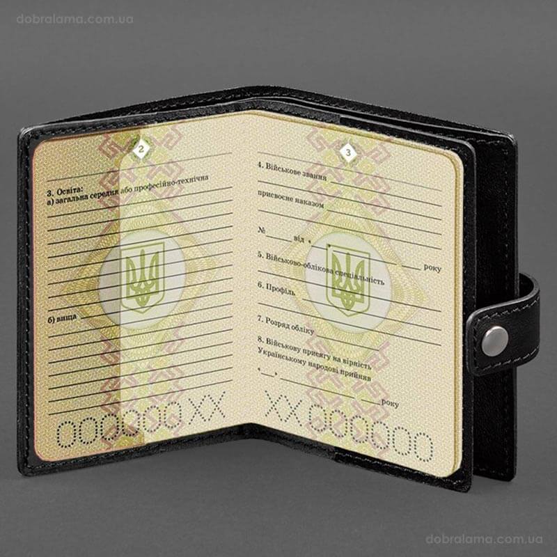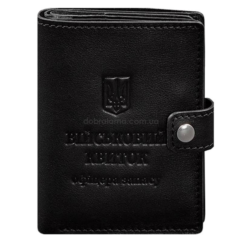 Шкіряна обкладинка-портмоне для військового квитка офіцера запасу 21.0 (чорна)