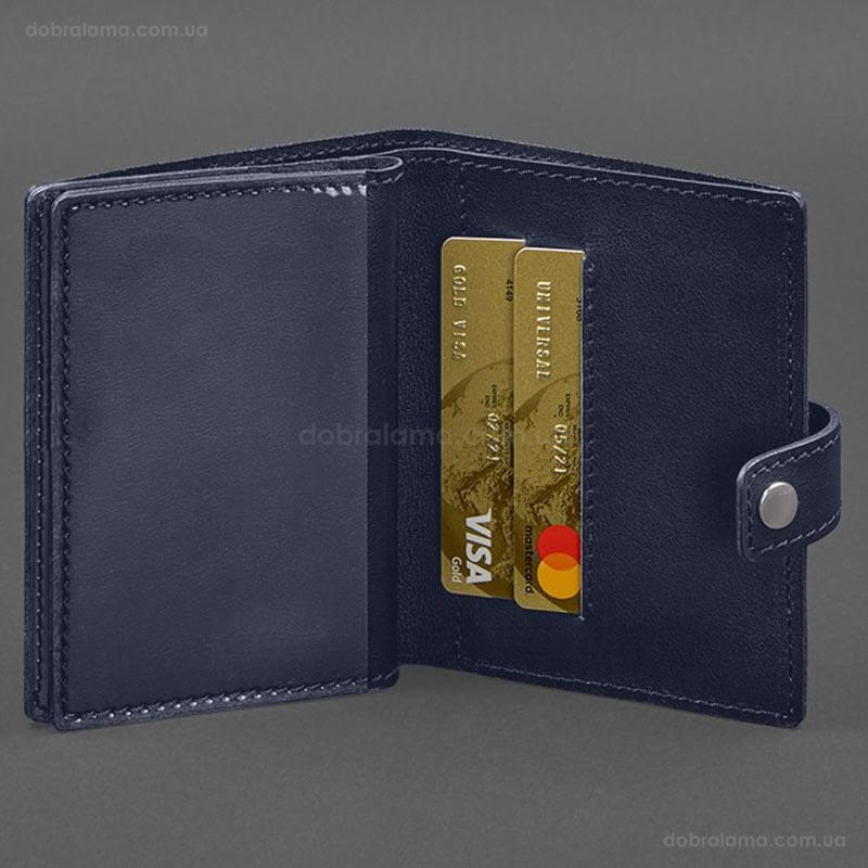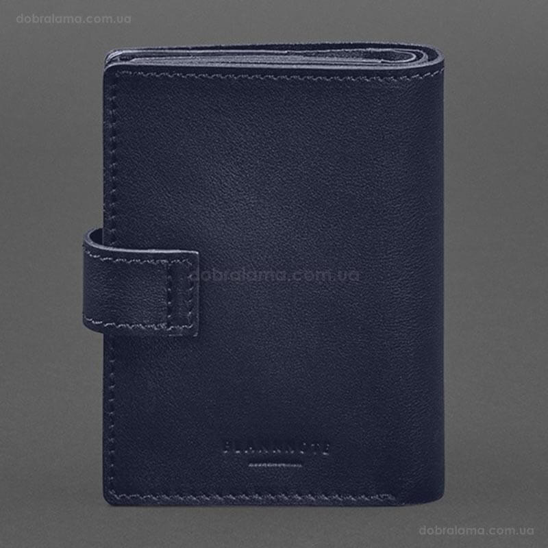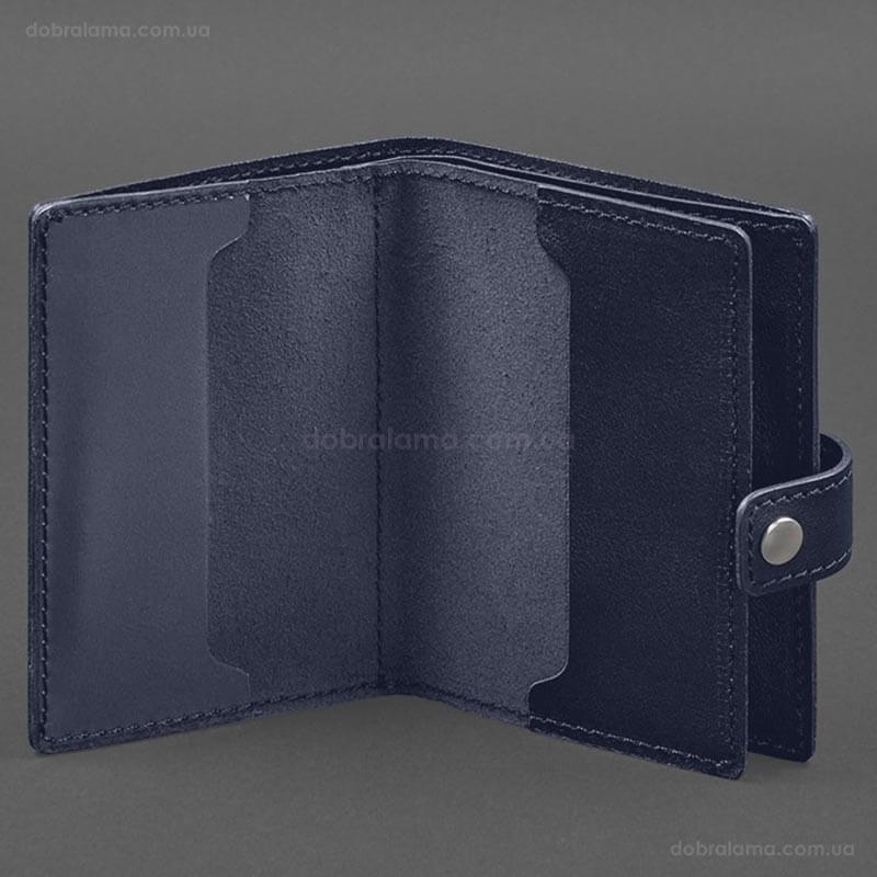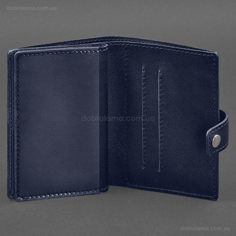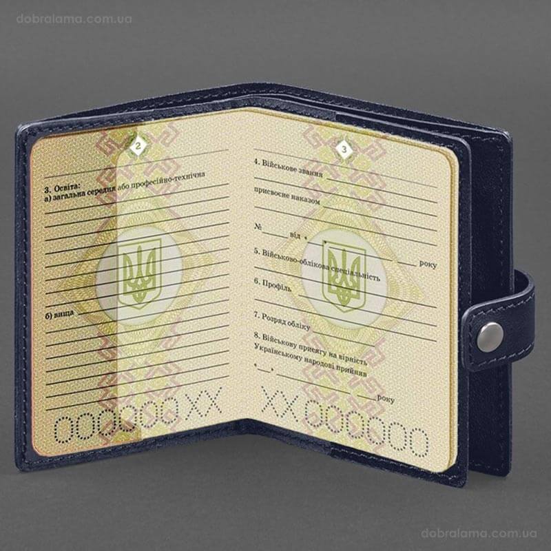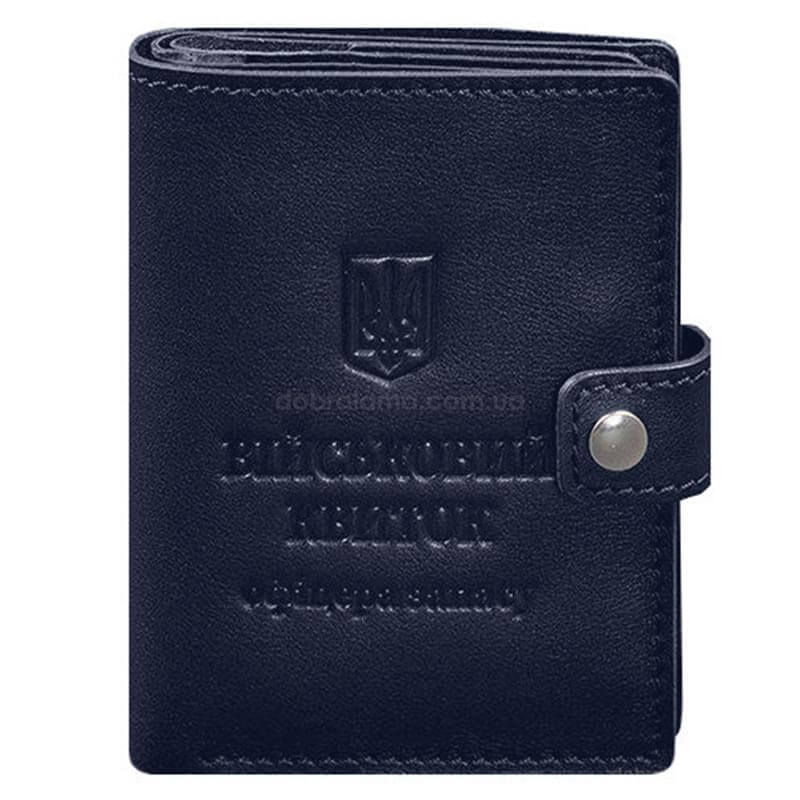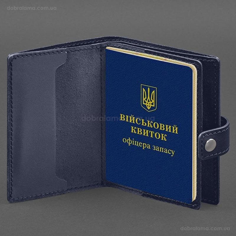 Шкіряна обкладинка-портмоне для військового квитка офіцера запасу 21.0 (темно-синя)