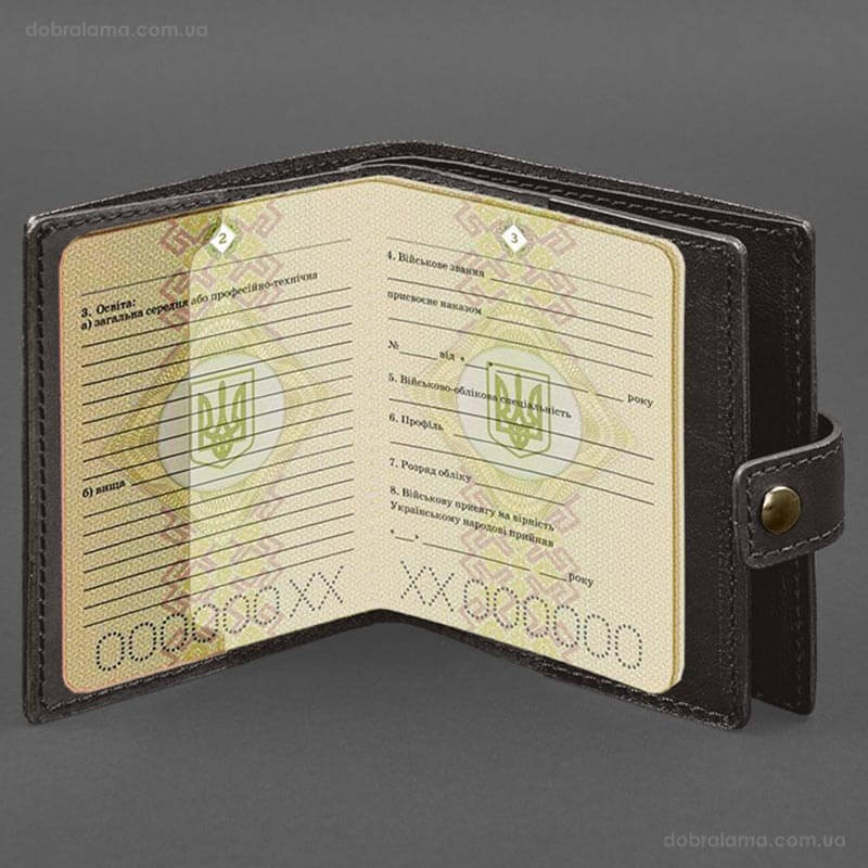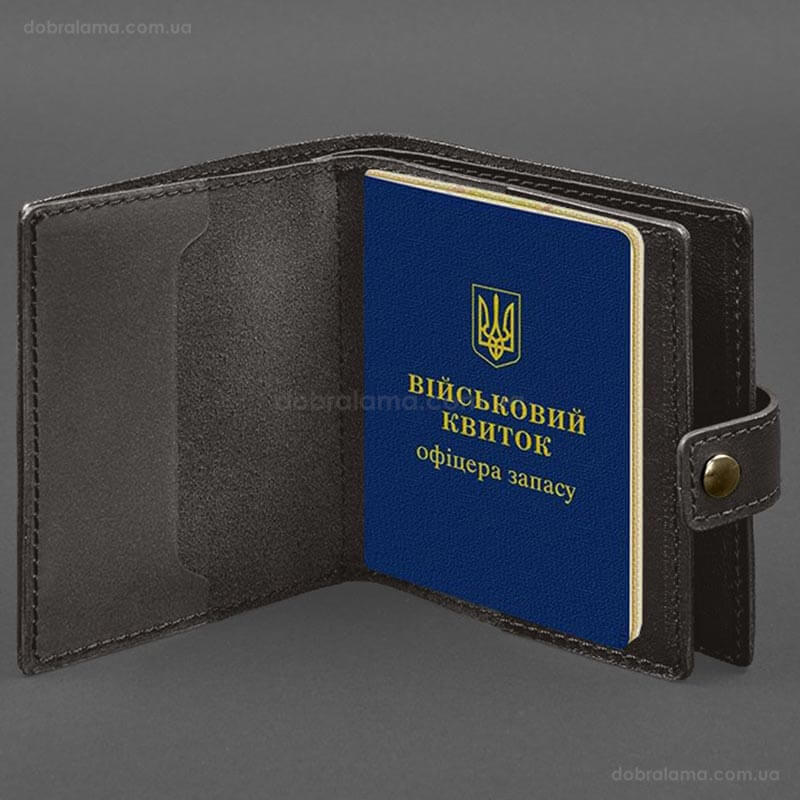 Шкіряна обкладинка-портмоне для військового квитка офіцера запасу 22.0 (темно-коричнева)