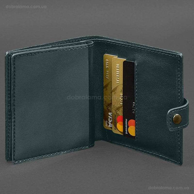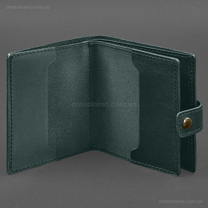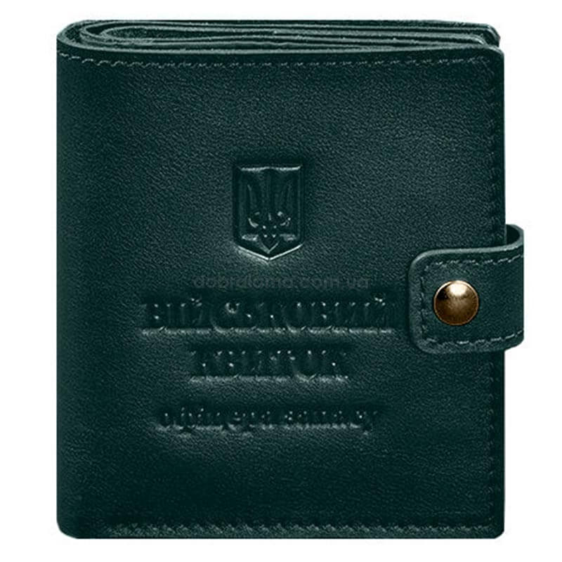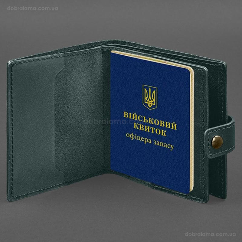 Шкіряна обкладинка-портмоне для військового квитка офіцера запасу 22.0 (зелена)