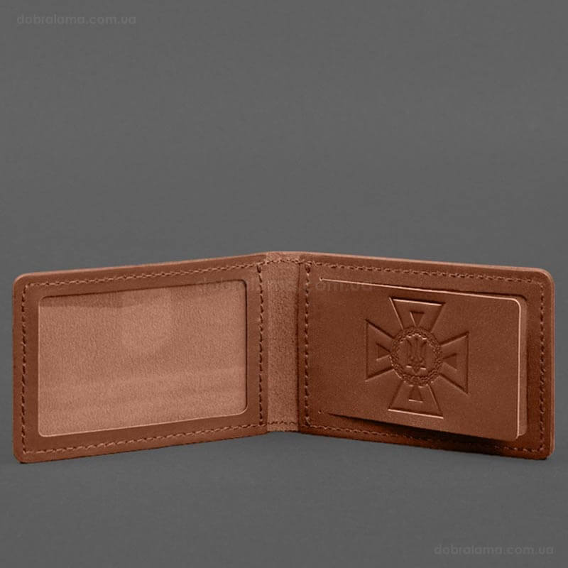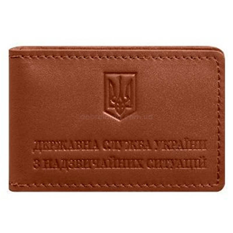 Шкіряна обкладинка з кишенею для посвідчення ДСНС (світло-коричнева)