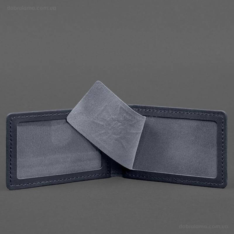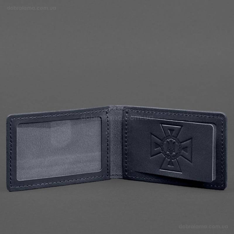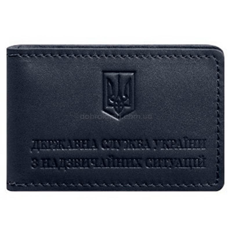 Шкіряна обкладинка з кишенею для посвідчення ДСНС (темно-синя)
