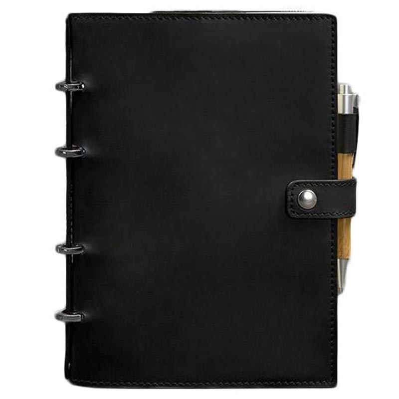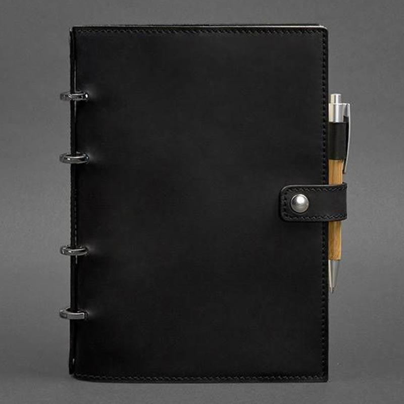 Нотатник має зручний розмір і закривається на хлястик з кнопкою. Шкіряний блокнот оснащений тримачем для ручки або олівця.