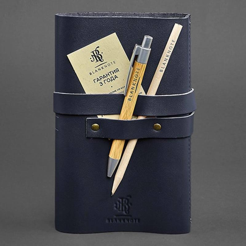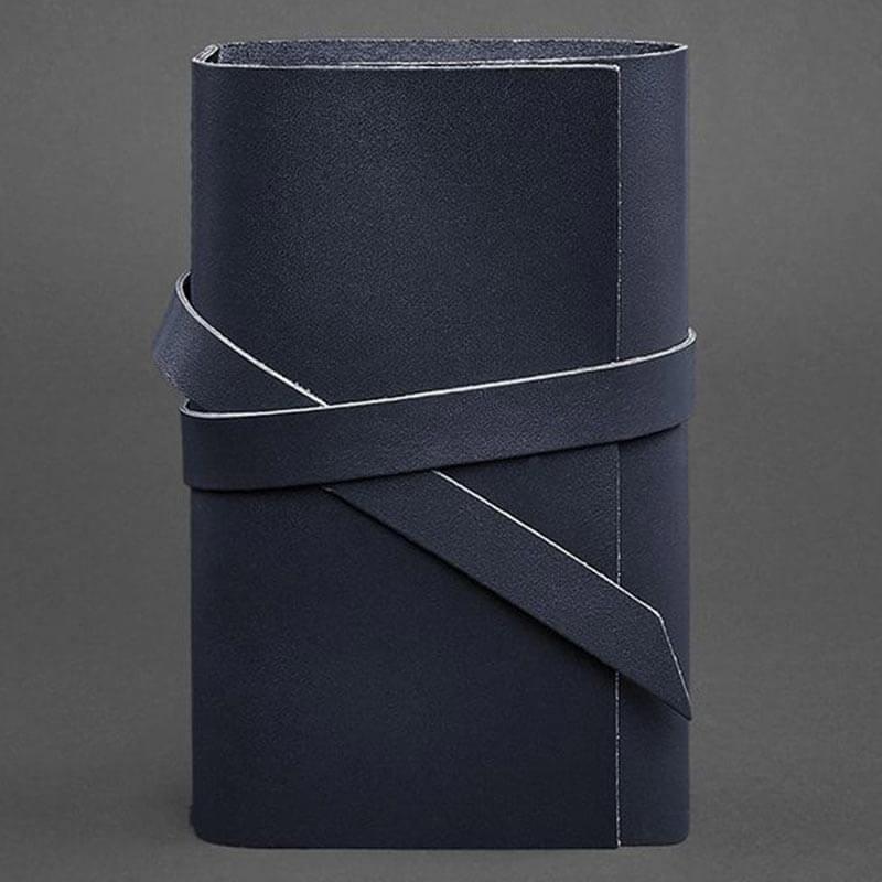 Шкіряний блокнот в темно-синьому кольорі підкреслить стиль і індивідуальність власниці. Блокнот виконаний повністю вручну в форматі софт-бука. Цей формат дозволяє використовувати блокнот необмежений час, так як внутрішній блок можна легко замінити, коли буде необхідність.