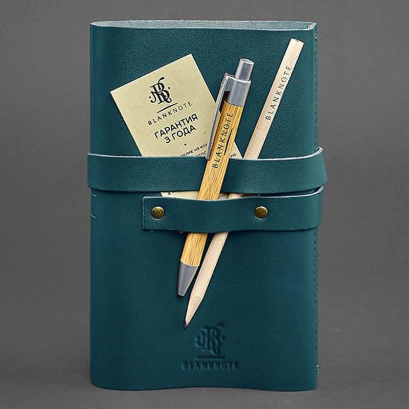 Шкіряний блокнот в зеленому кольорі підкреслить стиль і індивідуальність власниці. Блокнот виконаний повністю вручну в форматі софт-бука. Цей формат дозволяє використовувати блокнот необмежений час, так як внутрішній блок можна легко замінити, коли буде необхідність.