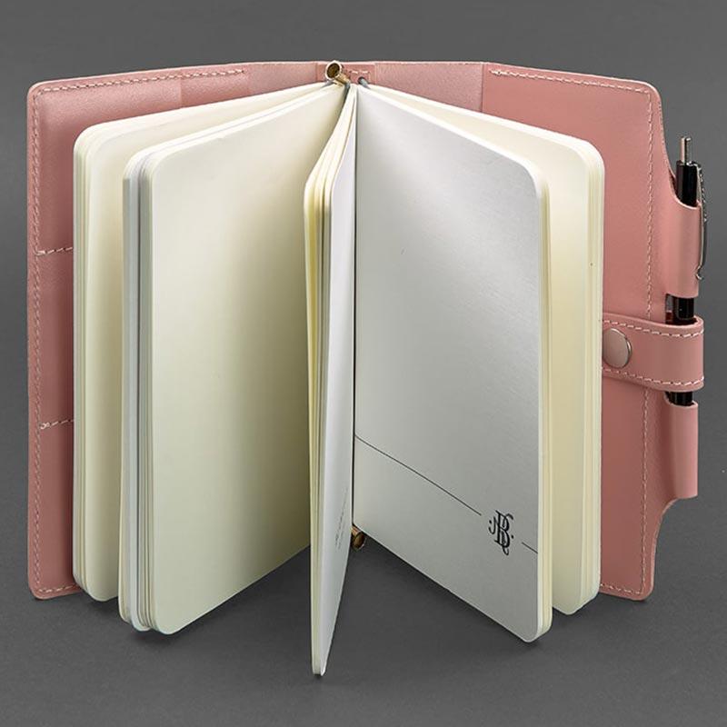 Цей блокнот виконаний в цікавому форм-факторі: не класична книжкова палітурка, а, так званий "софт-бук", тобто прикріплені до цілісного шматка шкіри кілька зошитів. В якості обкладинки - високоякісна шкіра. Всередині - класичний блокнот, розділений на три знімні зошити. У кожному зошиті - по 40 аркушів. Ви самі можете вибрати колір паперу зошитів.