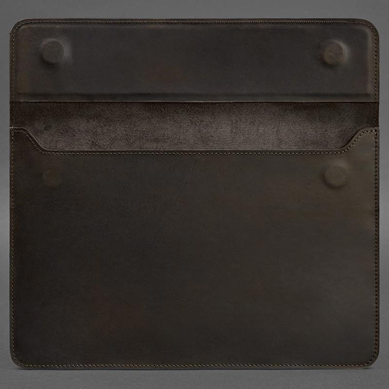Виконаний чохол із міцної натуральної шкіри з гарною вінтажною поверхнею. Всі шви повністю прошиті вручну спеціальною ниткою. Чохол оснащений клапаном із потайними магнітами, який надійно фіксує ноутбук усередині аксесуара.