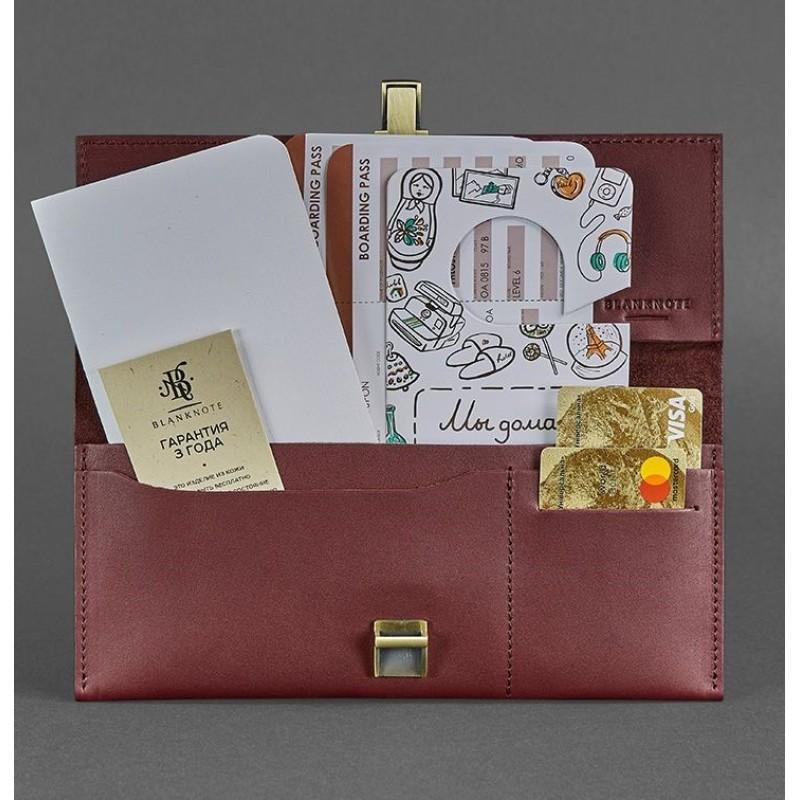 Зверніть увагу на тревел-кейс 2.0 в бордовому кольорі. Аксесуар виконаний з дуже якісної натуральної шкіри Krast. Усередині є декілька відділень, в яких Ви зможете з легкістю розмістити всі необхідні документи, телефон і посадочні квитки.