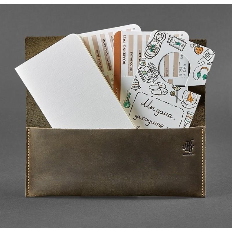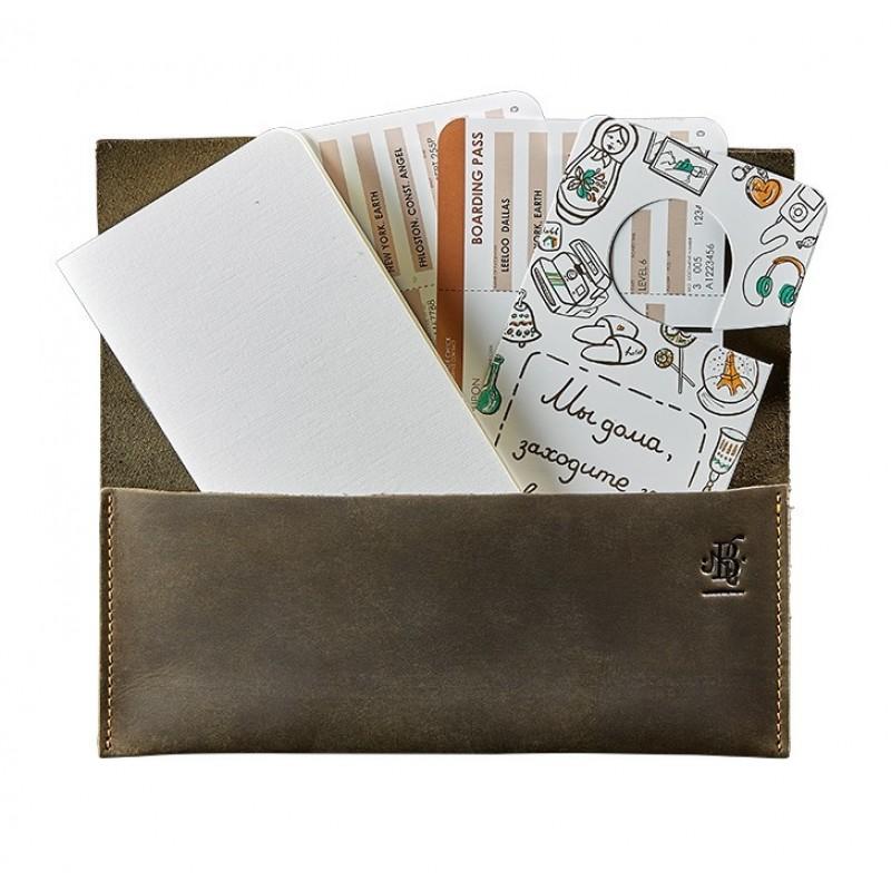 Тревел кейс - це конверт, виконаний повністю вручну з цільного шматка дуже щільної (2 мм) натуральної шкіри, в який помістяться всі квитки, кредитки, візитки, паспорта, карти, гроші і багато іншого. Тепер не потрібно довго шукати по всій сумці і кишенях той чи інший документ, холдер надає Вам можливість зберігати все це в ньому :)