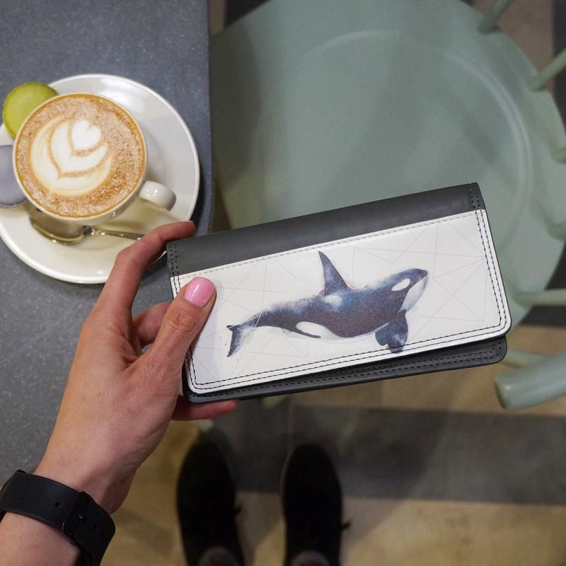 Дизайнерський гаманець з екошкіри з креативним принтом на поверхні.