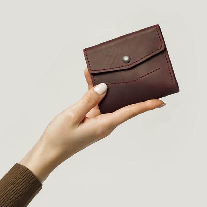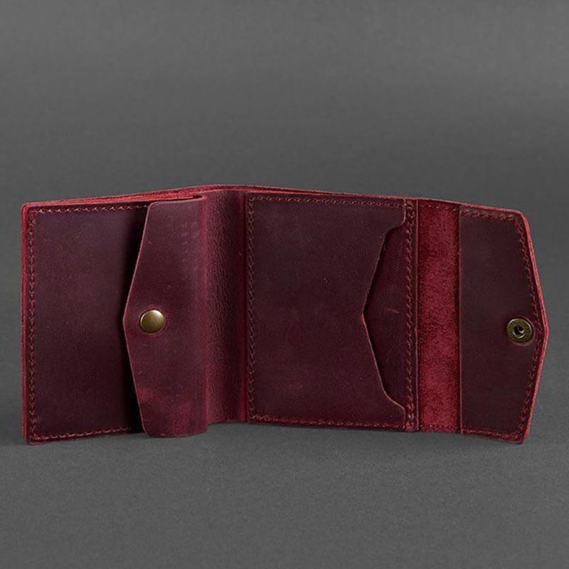 Бордовий гаманець подвійного складання з натуральної шкіри Crazy Horse.