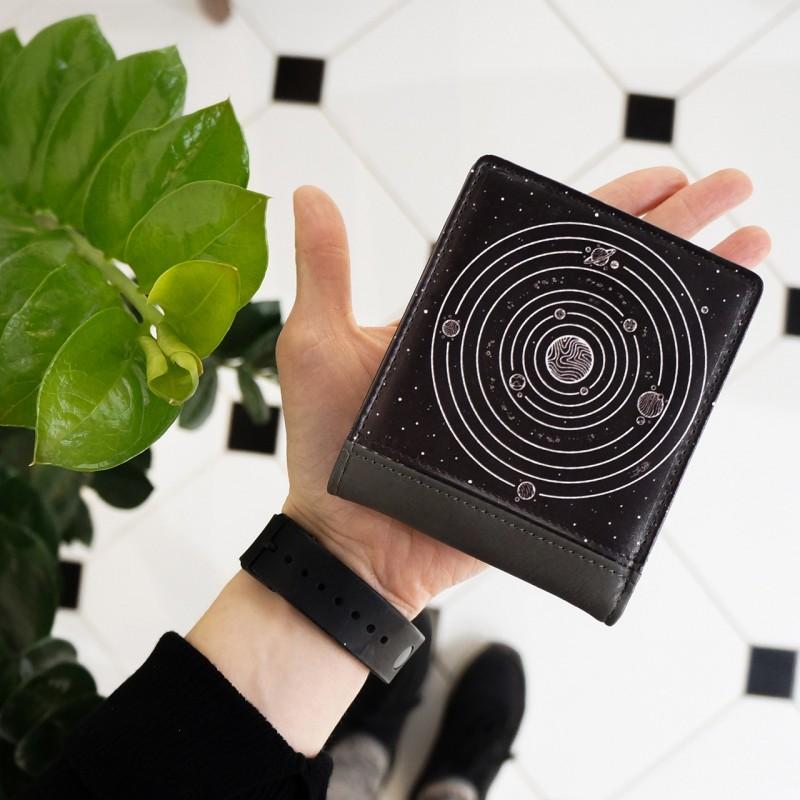 Дизайнерський гаманець з екошкіри з креативним принтом на поверхні.