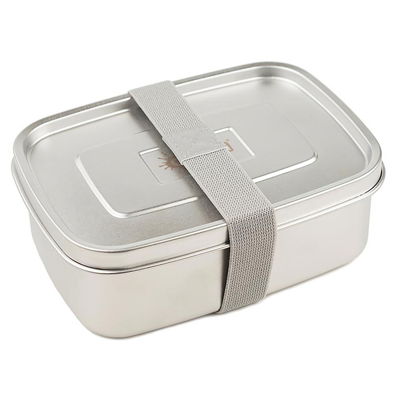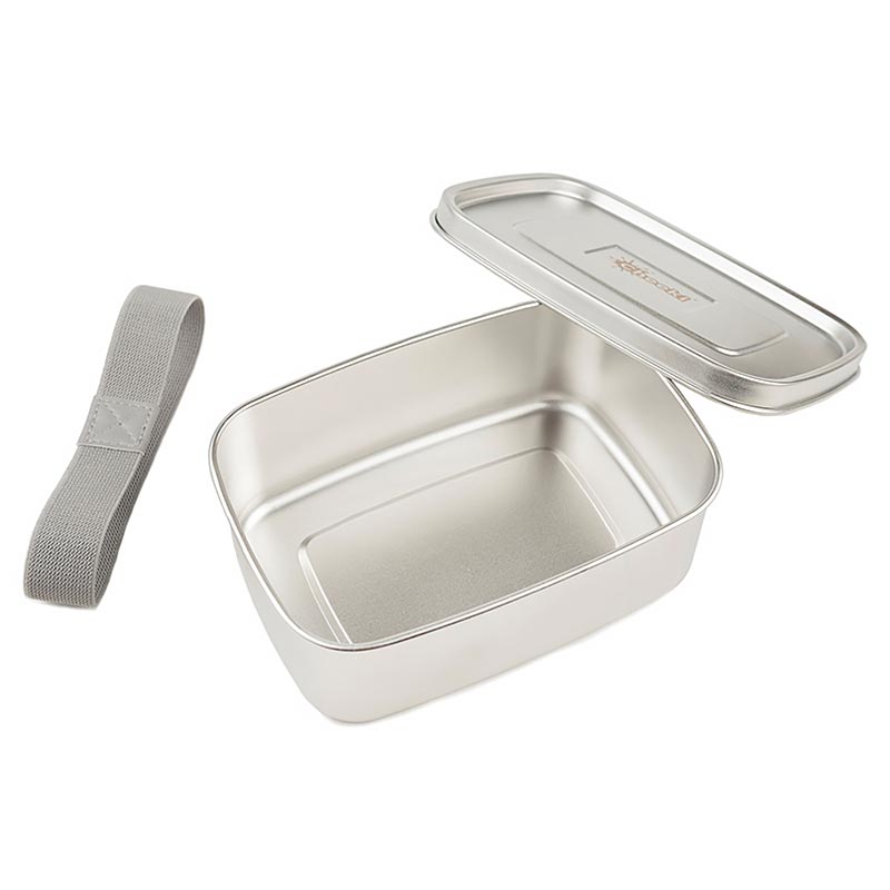 Металевий ланч бокс об'ємом 1 л, легко поміститься в ваш ланчбег або невелику сумку. Він ідеально підійде для дітей, як шкільний ланч бокс, завдяки зручній та простій системі відкриття. Має гумку для фіксації кришки.
