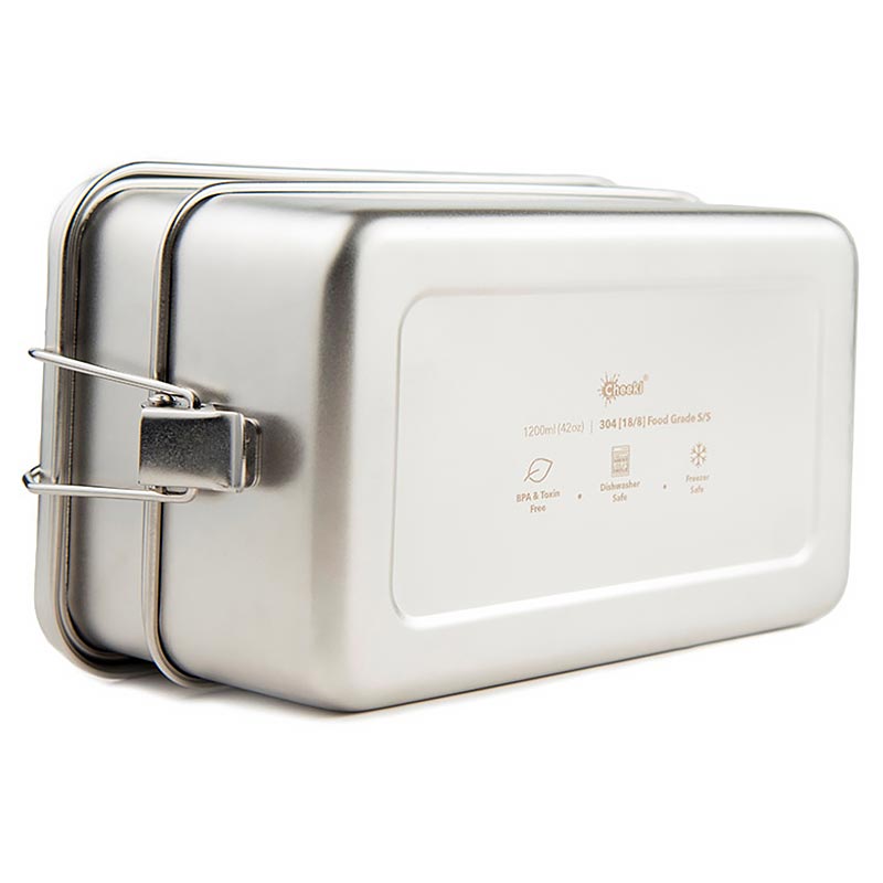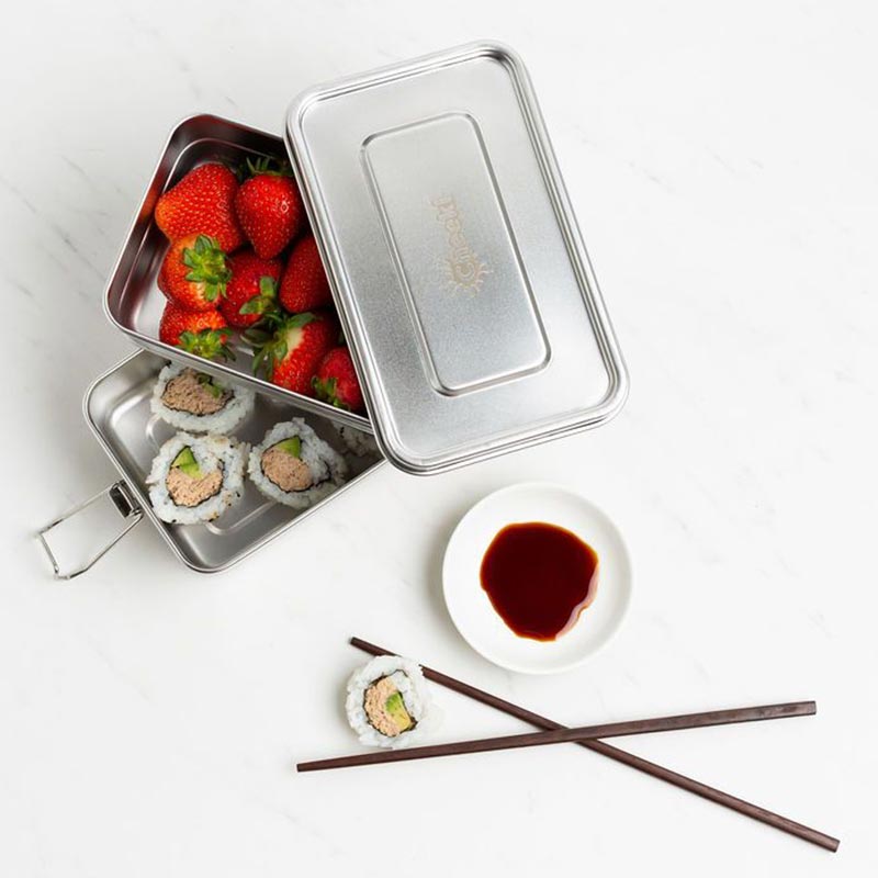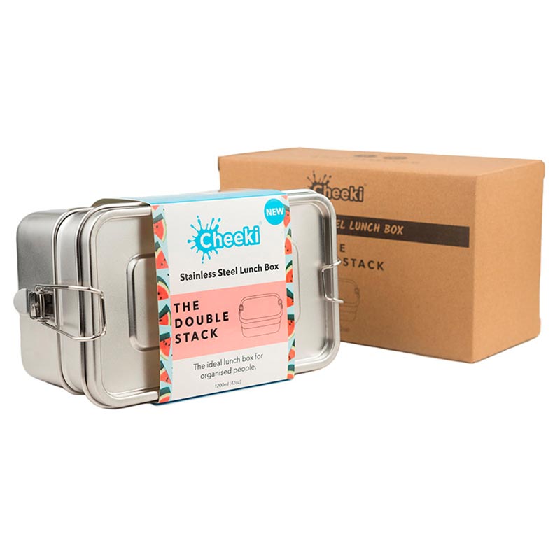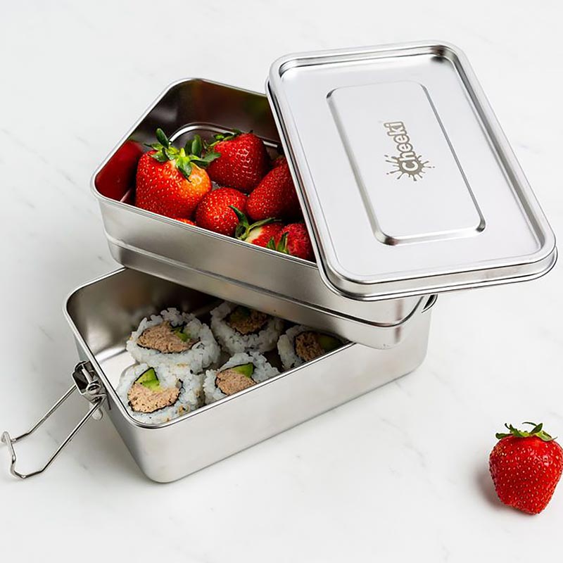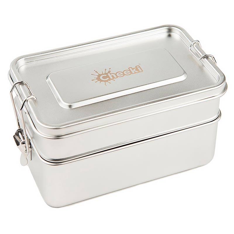 Сталевий двох'ярусний ланчбокс австралійського бренду Cheeki - знахідка як для мам, що піклуються про здоров'я своїх дітей, так і для офісних працівників, які вважають за краще домашню їжу. Також в ньому дуже зручно брати їжу на пікнік - коробка для їжі легко поміститься в невелику сумку.
