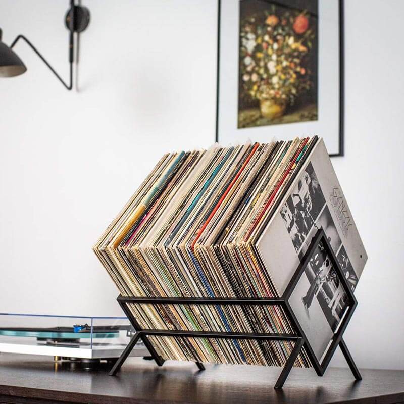 Металева стійка для зберігання платівок або книг "Ромб 60" (чорна)