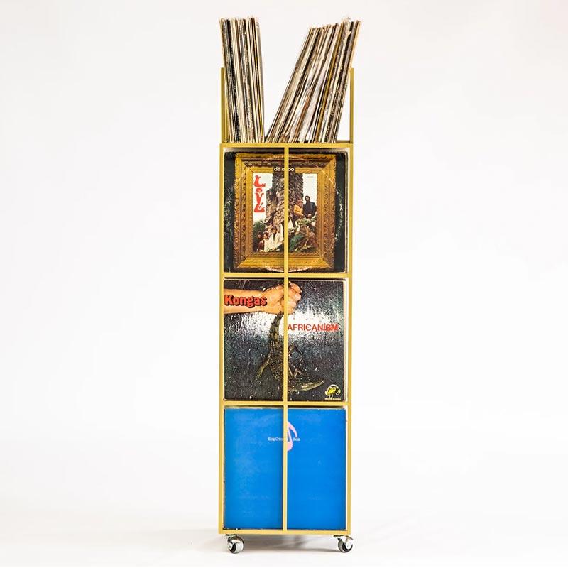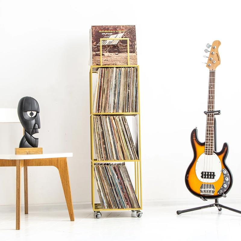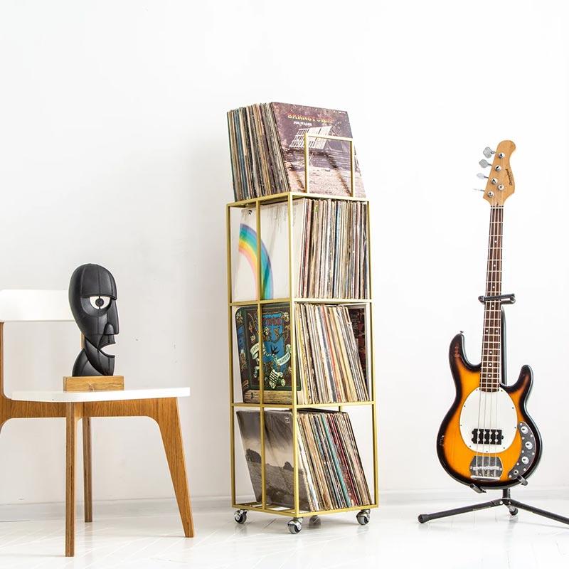 Металевий контейнер для зберігання платівок 4-х поверховий (золотистий)