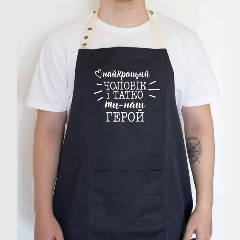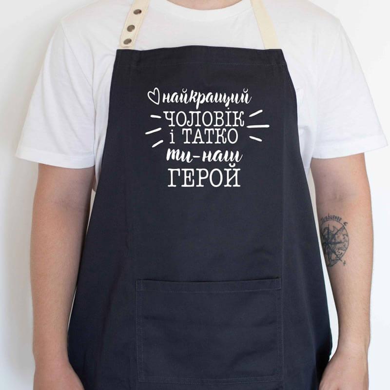 Чоловічий фартух "Найкращий чоловік і татко ти наш герой №2" (чорний)