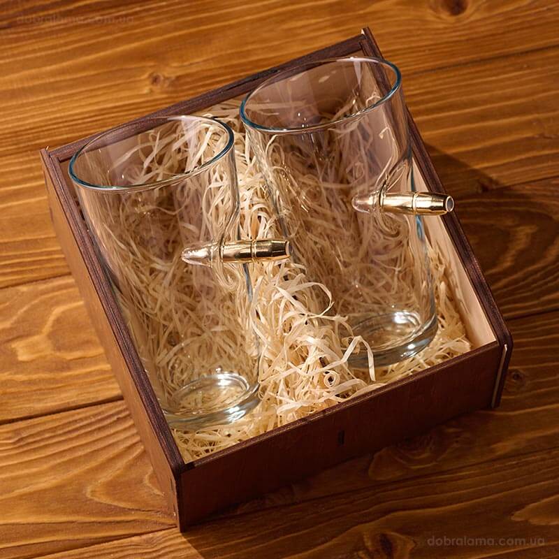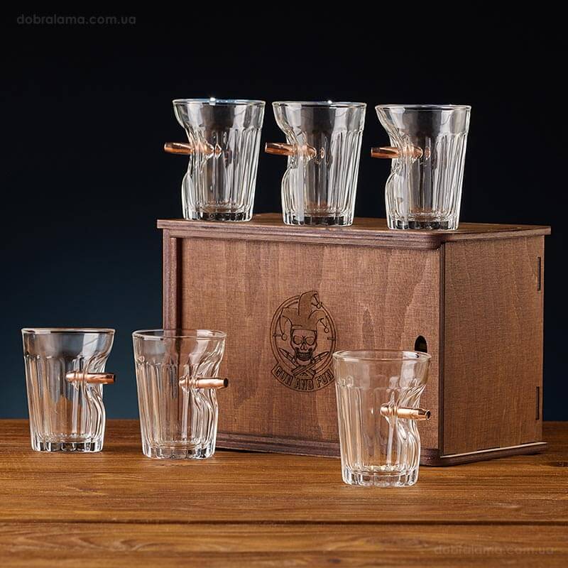Набір 6-ти склянок для віскі з кулею 7.62 мм в коробі з БК