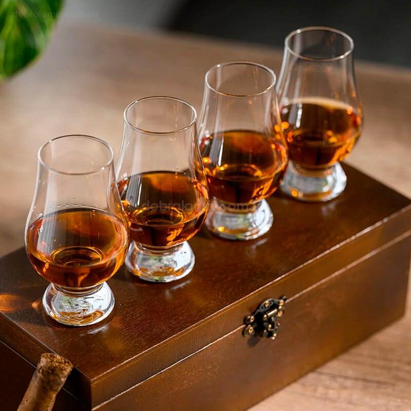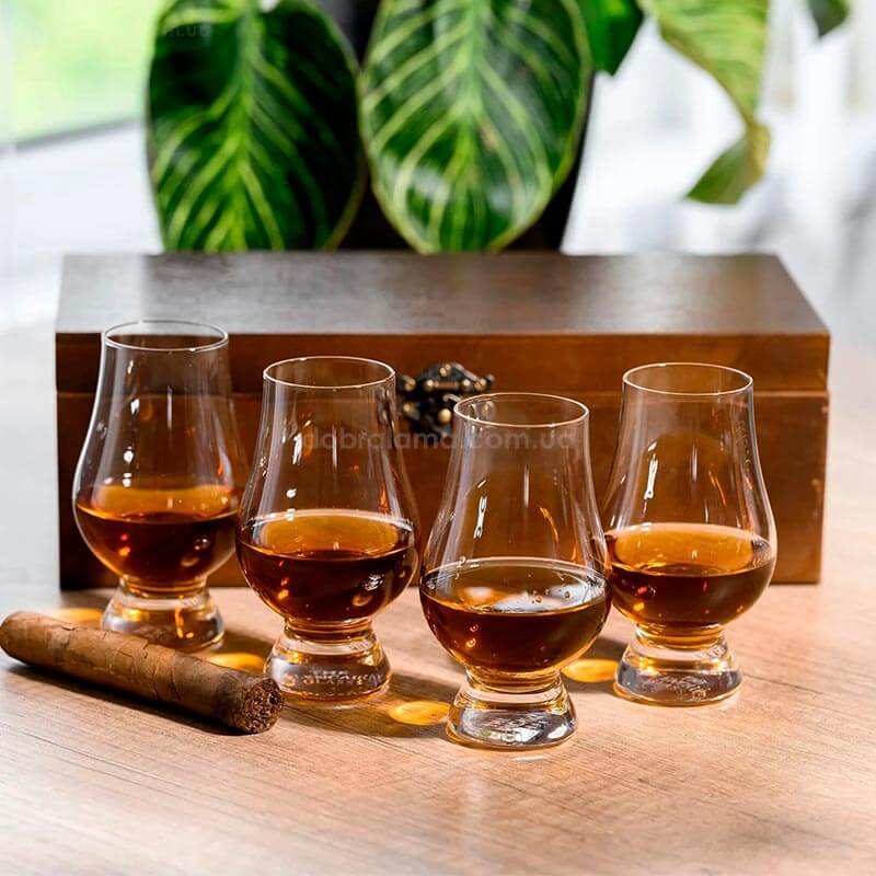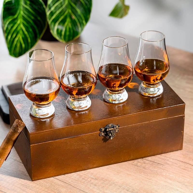 Набір 4-х келихів для віскі Glencairn в дерев'яній коробці