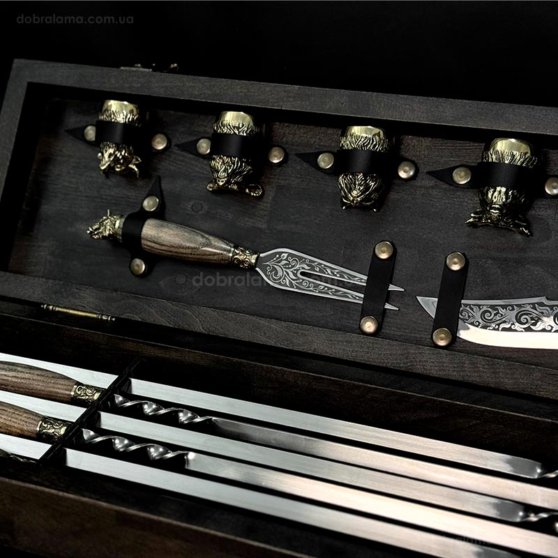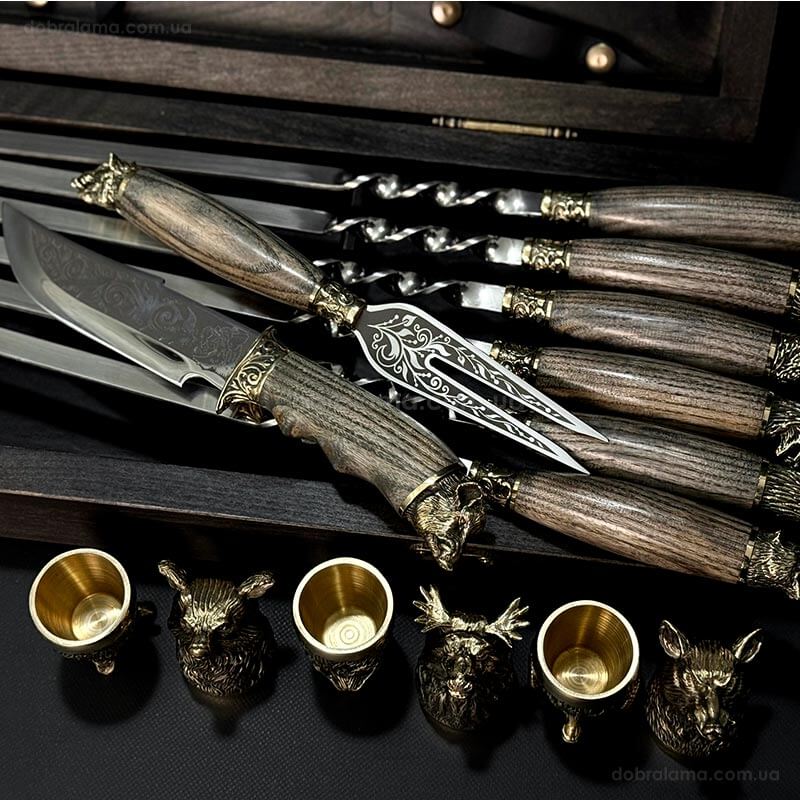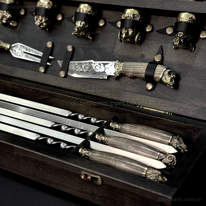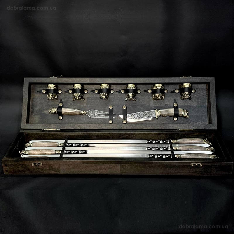 Набір для шашлику «Мисливський» з дерев'яними ручками (в дерев'яному кейсі)