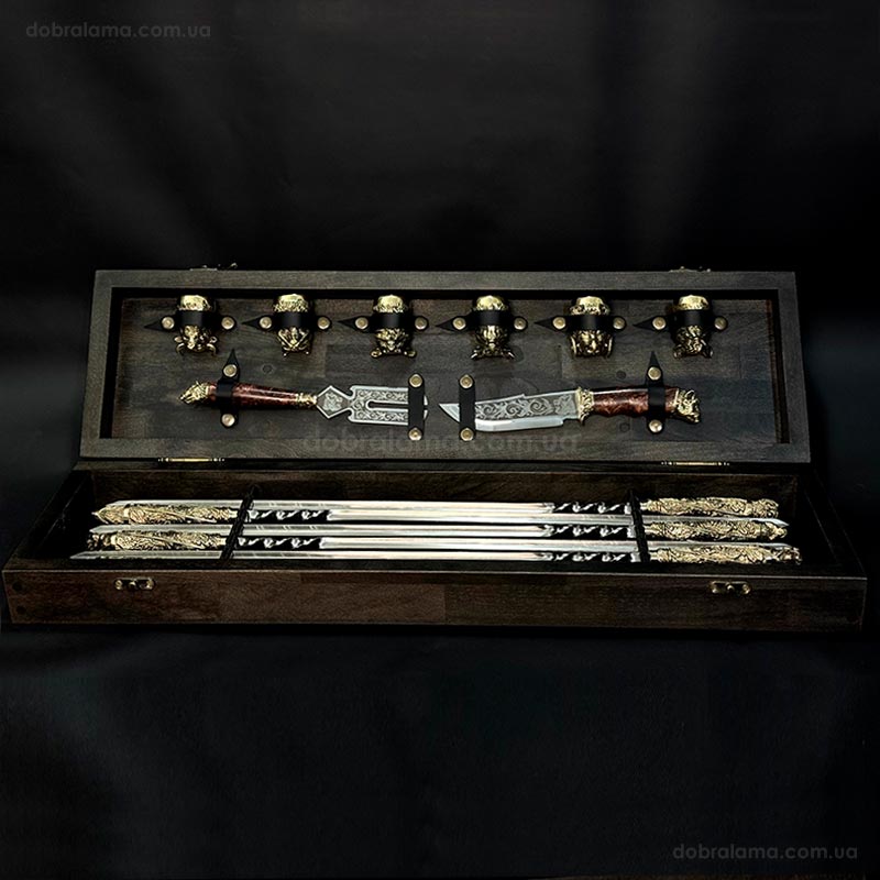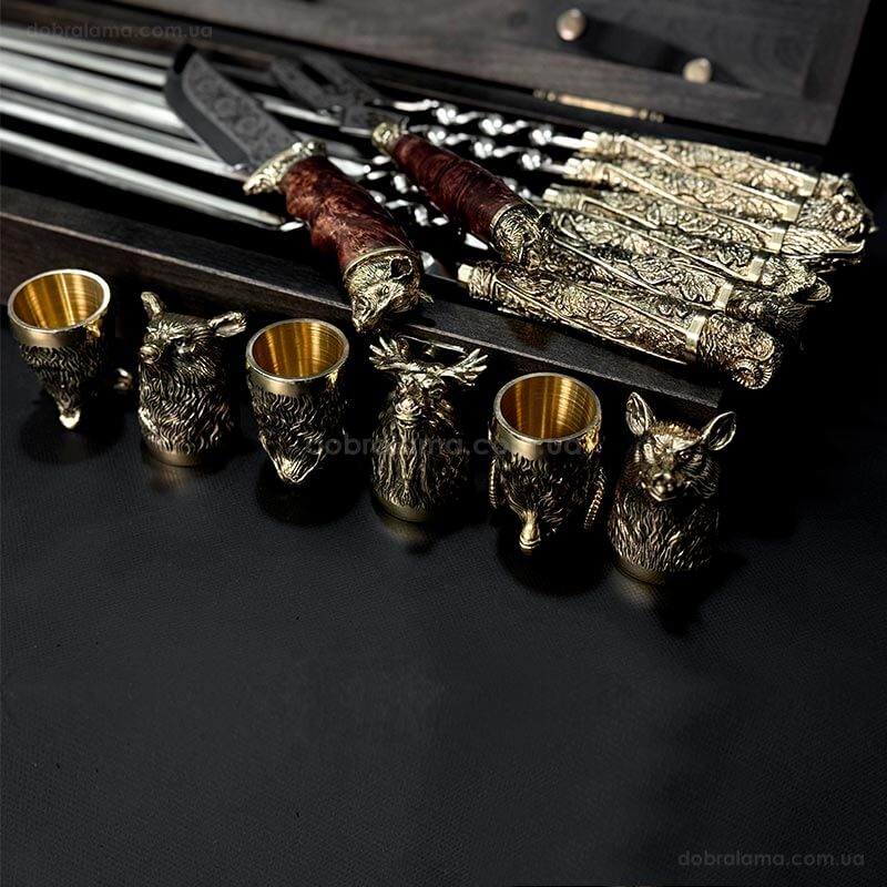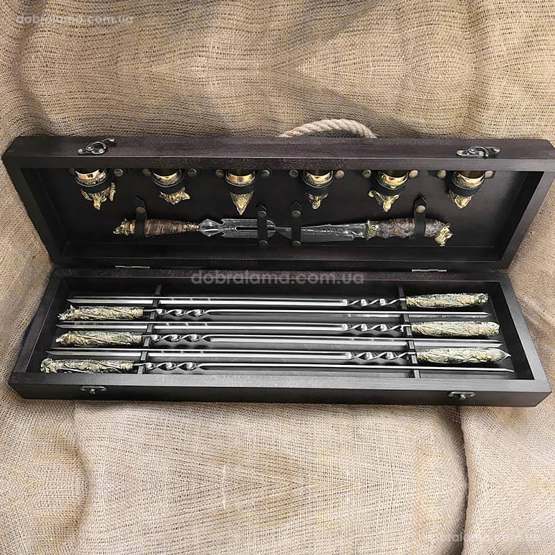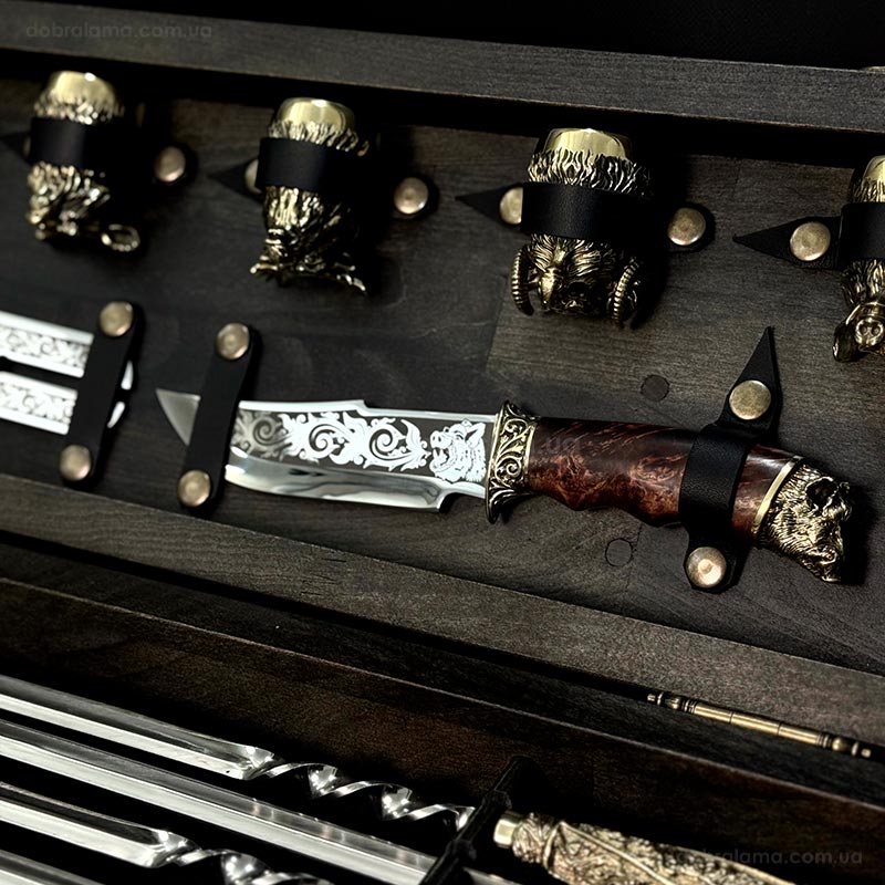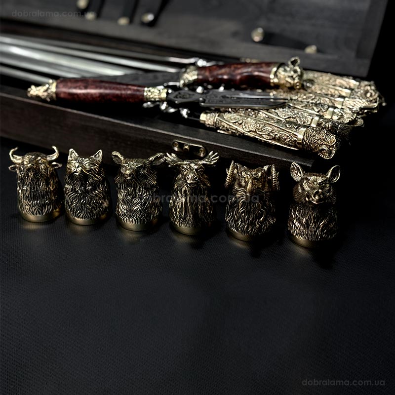 Набір для шашлику "Дикі звірі" (в дерев'яному кейсі)