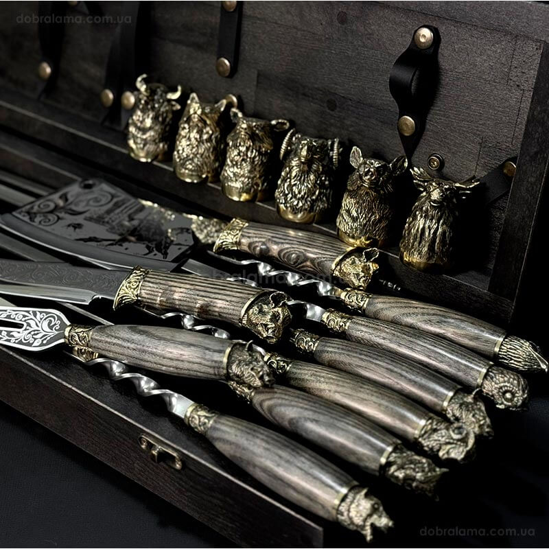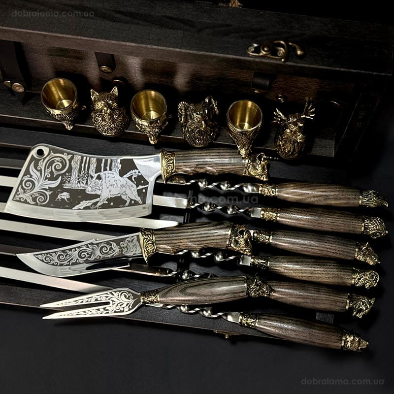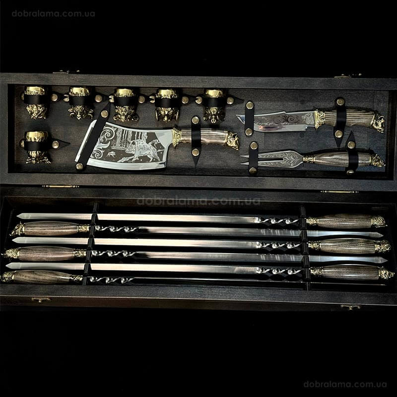 Набір для шашлику «Дикі звірі ясен Max» (в дерев'яному кейсі)