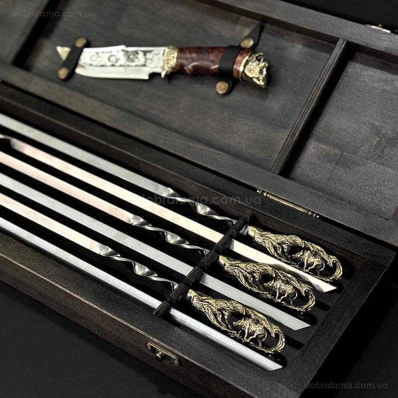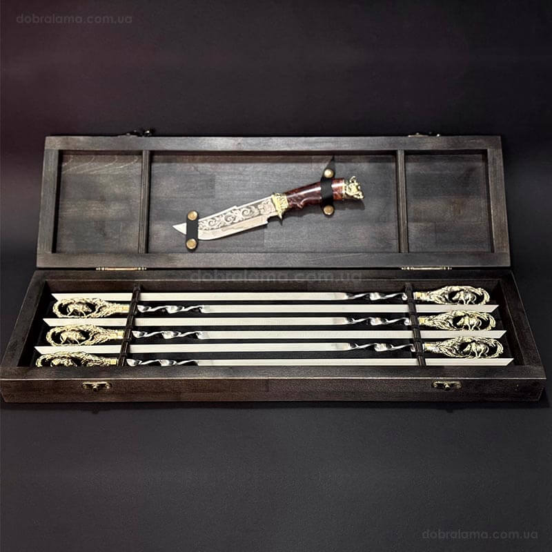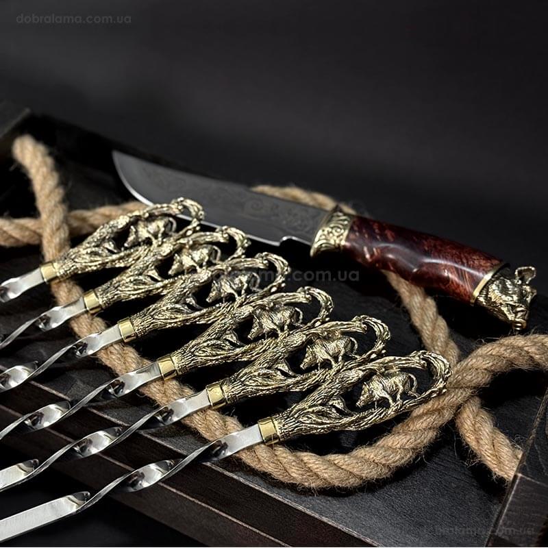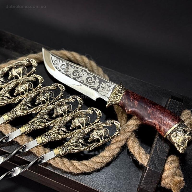 Набір для шашлику «Кабан» з ножем (в дерев'яному кейсі)