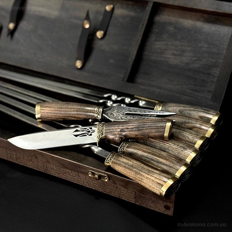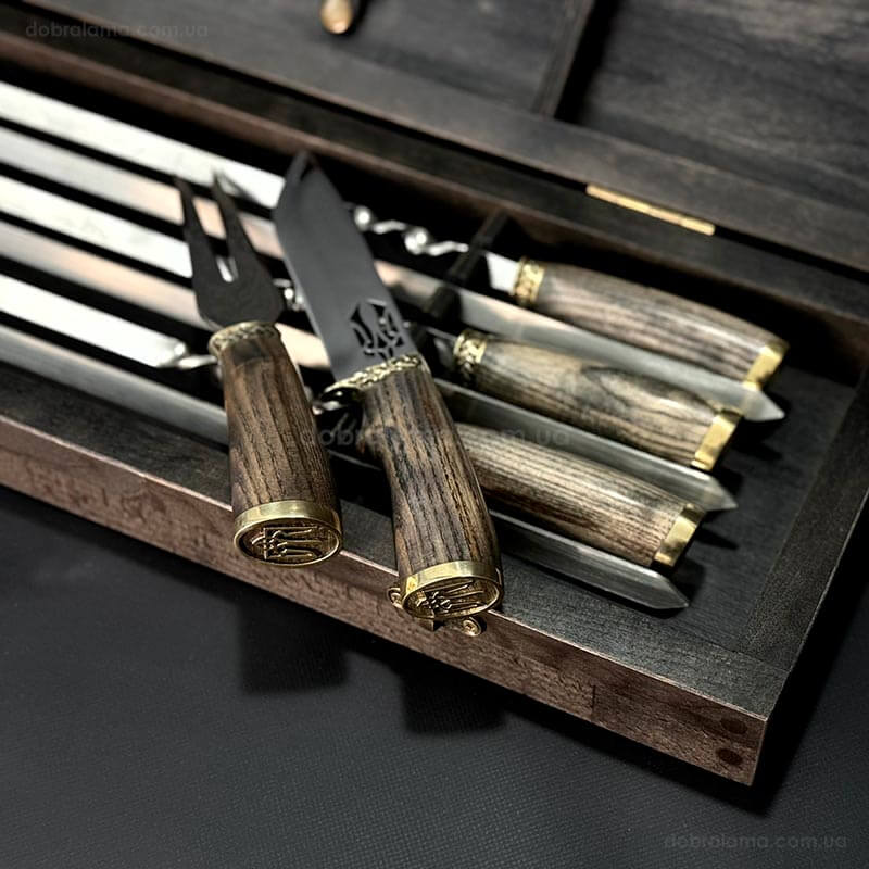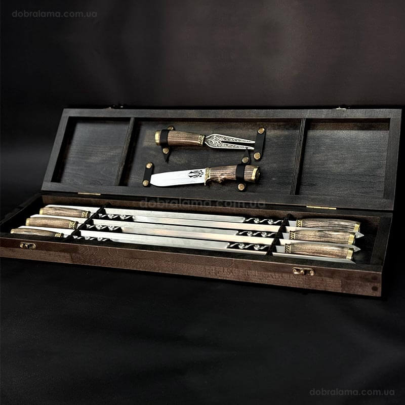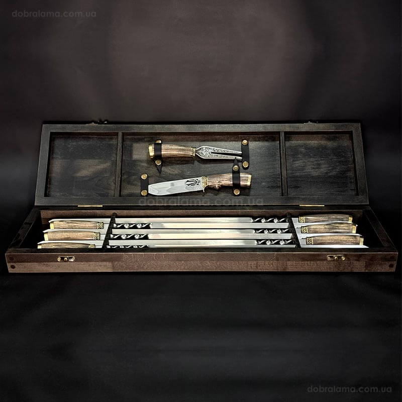 Набір для шашлику «Тризуб» з ножем і виделкою (в дерев'яному кейсі)