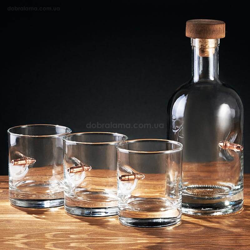 Подарунковий набір для віскі з графина і 3 склянок з кулею стане відмінним подарунком для любителя міцних напоїв. Графин виглядає вишукано і оригінально, така річ буде доречно виглядати в офісі у начальника на столі і вдома. Відомо, що використання графина є хорошим тоном під час прийому гостей, крім цього, алкоголь просто красиво виглядає всередині, особливо на сонці, красиво пропускаючи промені світла.
