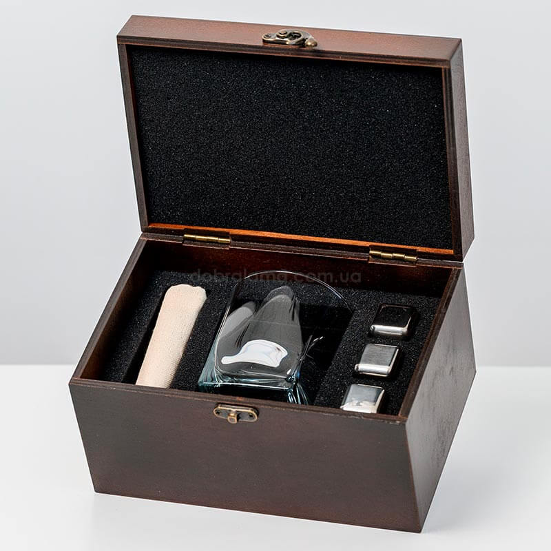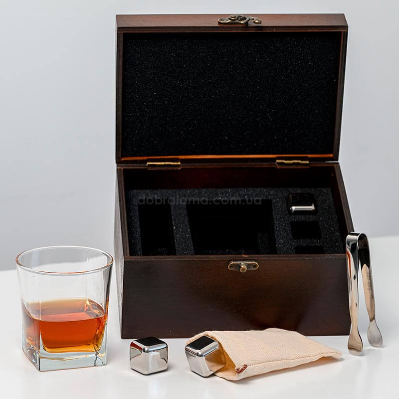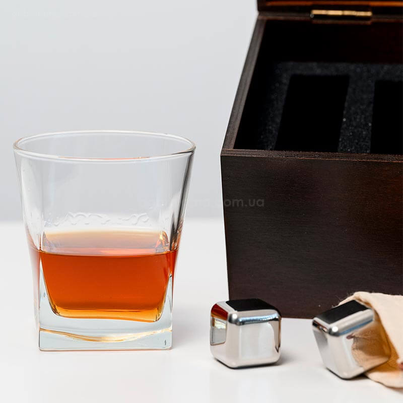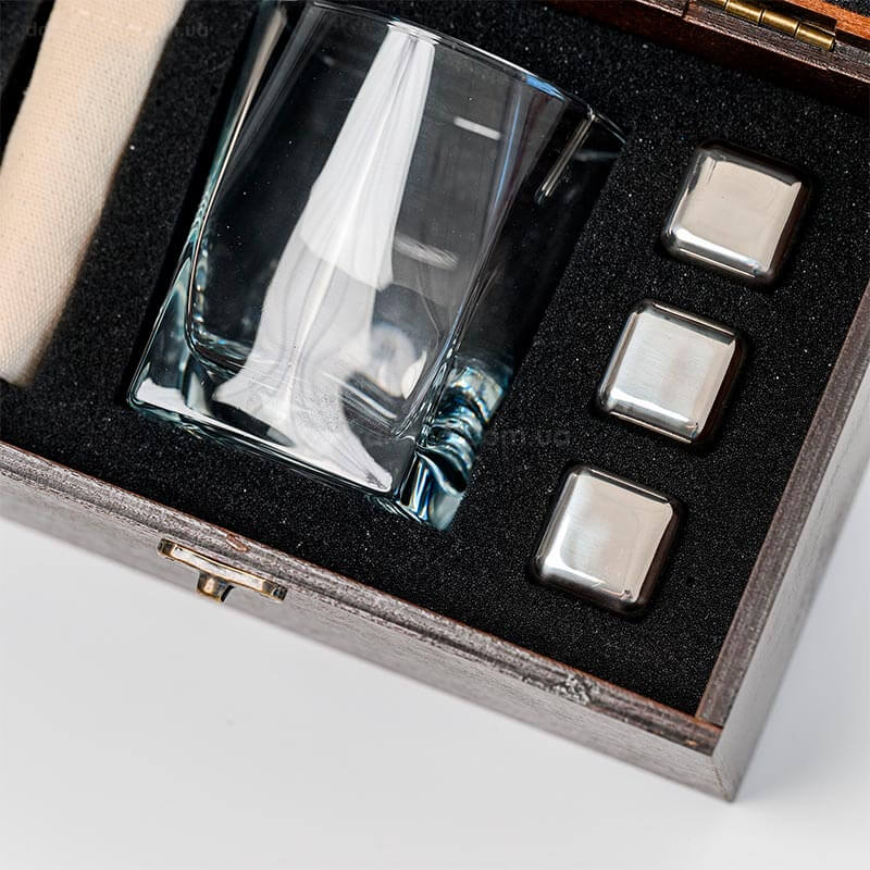 Набір для віскі «Сталевий» №1 Baltic (склянка, 3 кубики для віскі, щипці, мішечок)