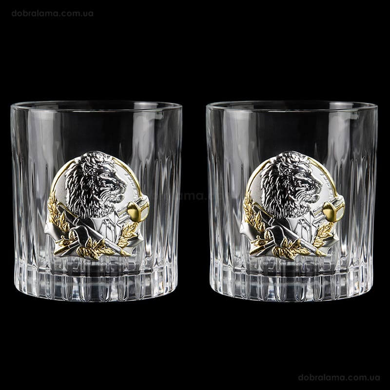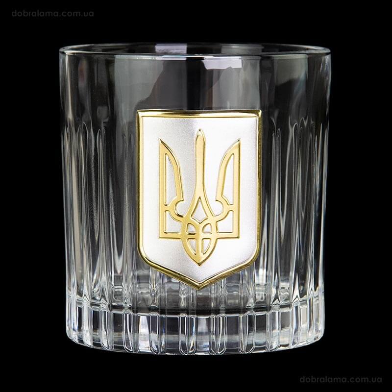 Але це ще не все! Кожна склянка прикрашена накладкою у вигляді емблеми ЗСУ виконаної зі срібла 925-ї проби та золота 24 Kt, а також декорована золотою облямівкою. Графін прикрашений накладкою у вигляді герба України з срібла 925-ї проби та золота 24 Kt.