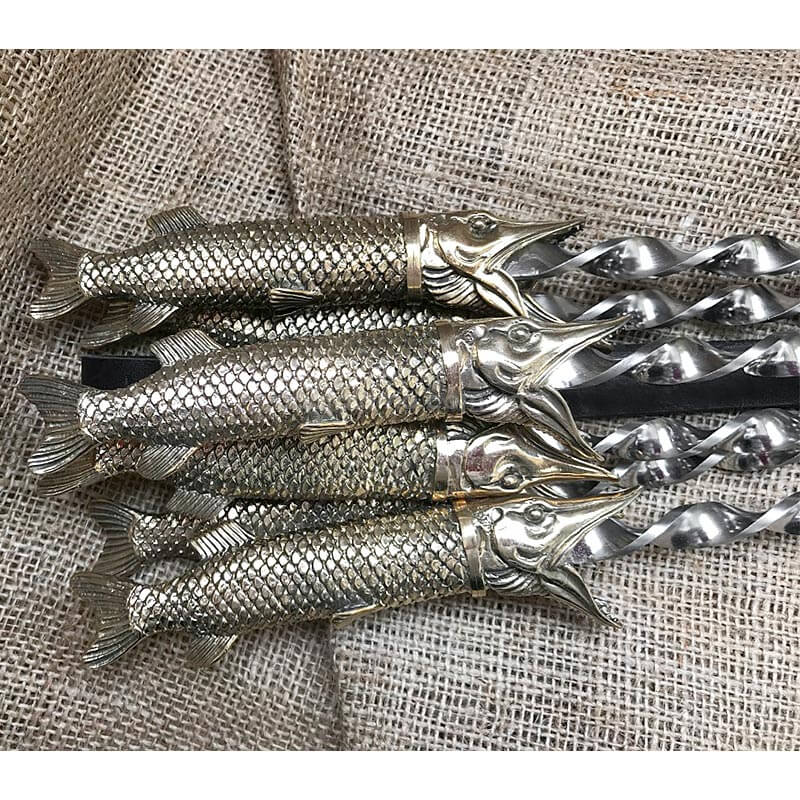 Набір шампурів "Царський улов" з ножем (в шкіряному сагайдаку)