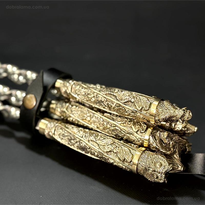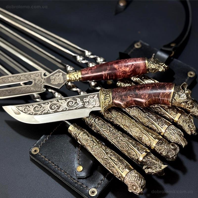 Набір шампурів "Дикі звірі" з ножем і виделкою (в шкіряному сагайдаку)