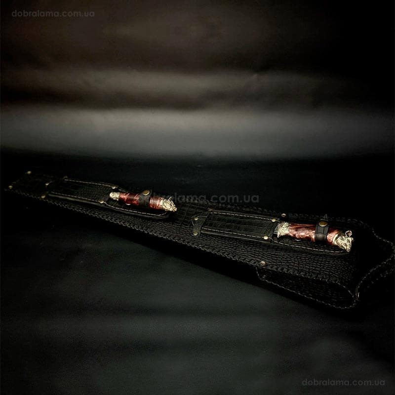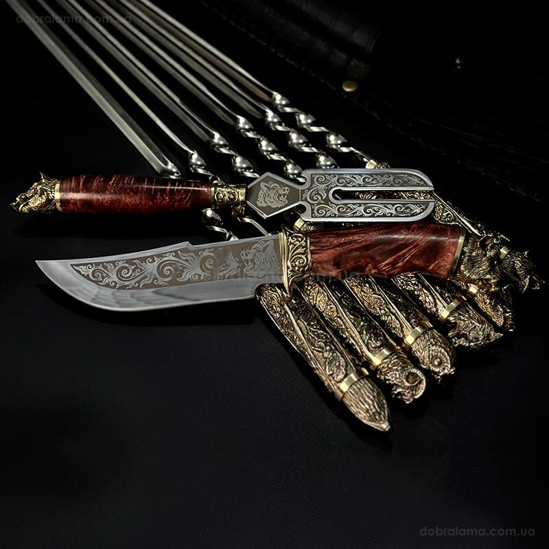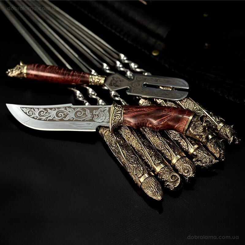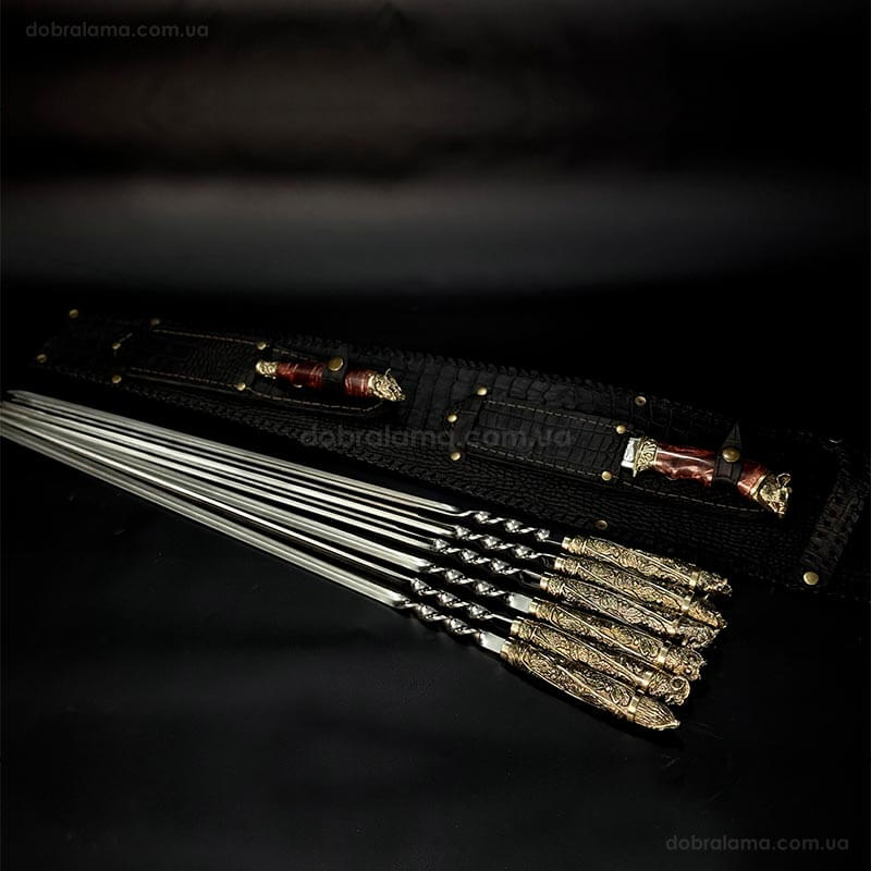 Набір шампурів "Дикі звірі" з ножем і виделкою (в шкіряному закритому сагайдаку)