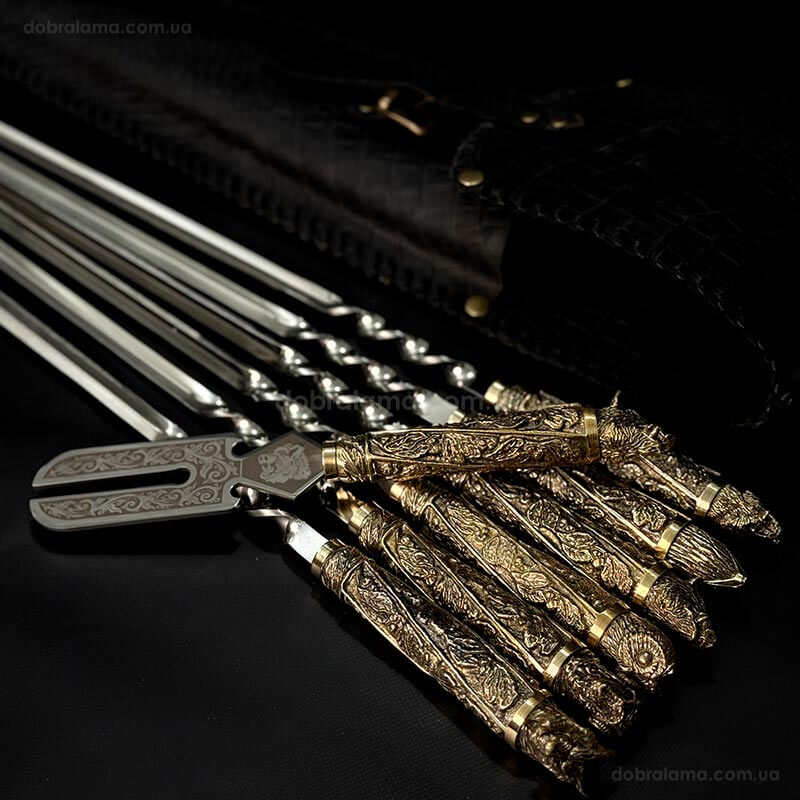 Набір шампурів «Дикі звірі» з виделкою (в шкіряному закритому сагайдаку)