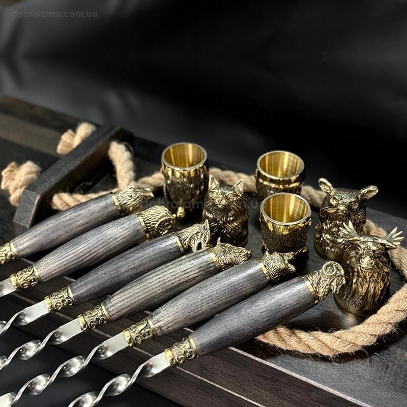 Набір шампурів «Дикі звірі ясен» з чарками (в дерев'яному кейсі)