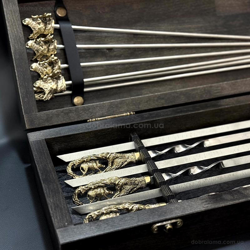 Набір шампурів "Кабан" з мангалом (в дерев'яному кейсі)