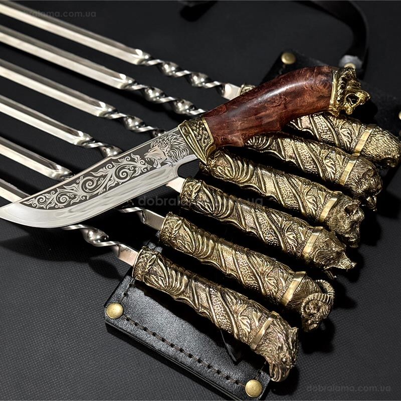 Набір шампурів «На привалі» з ножем (в шкіряному сагайдаку)