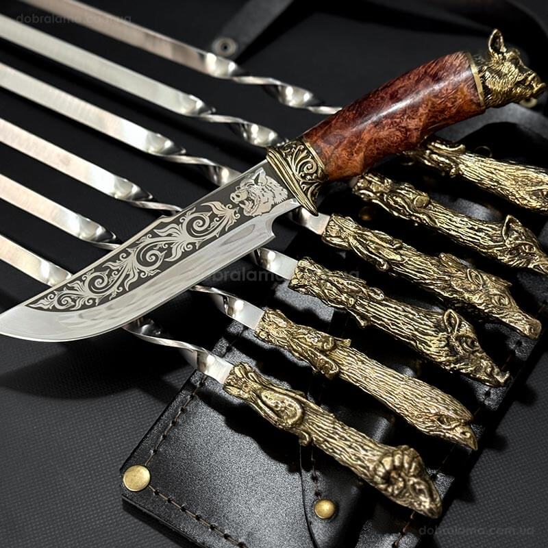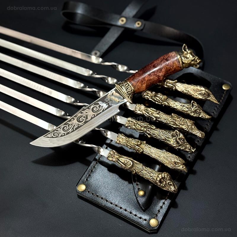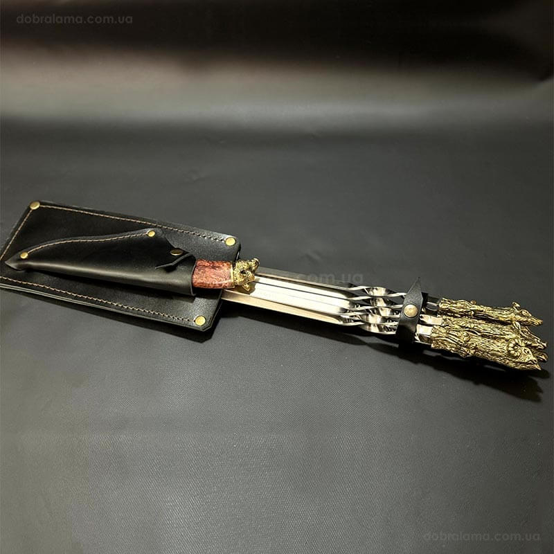 Набір шампурів "Мисливський трофей" з ножем (в шкіряному сагайдаку)