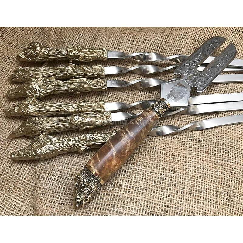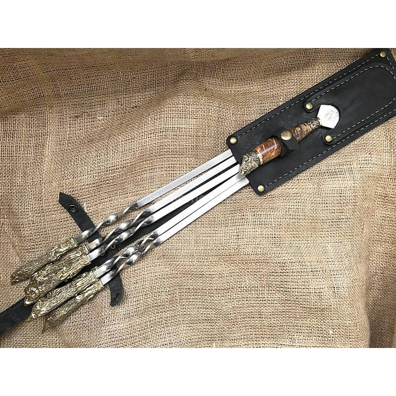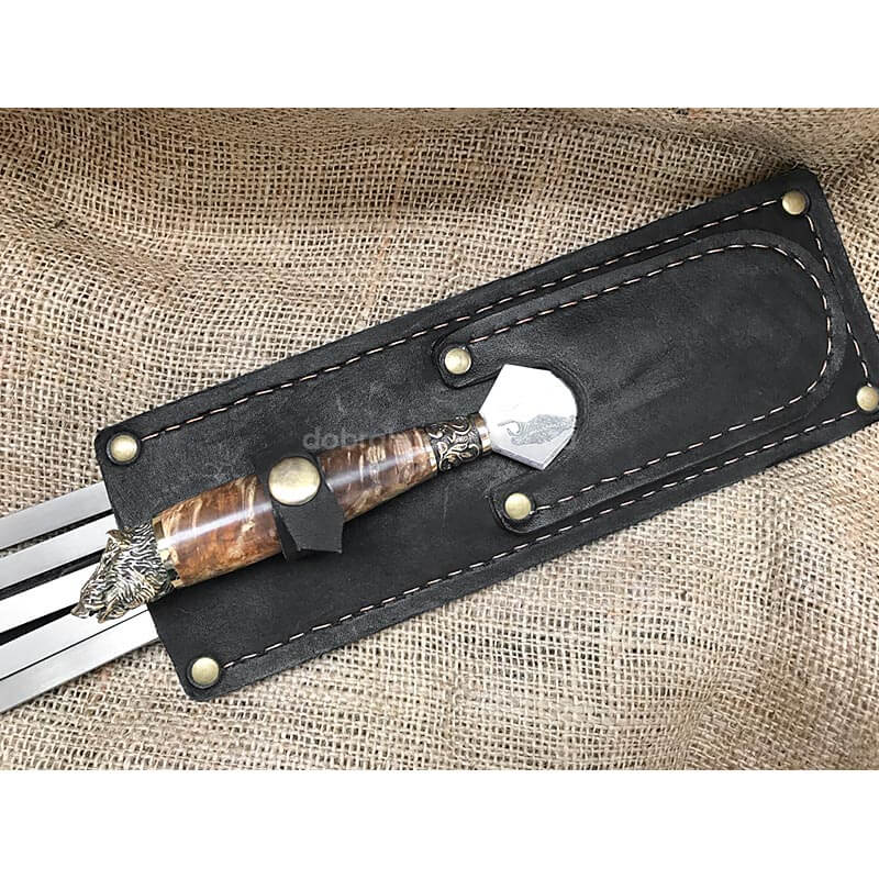 Набір шампурів "Мисливський трофей" з вилкою (в шкіряному сагайдаку)
