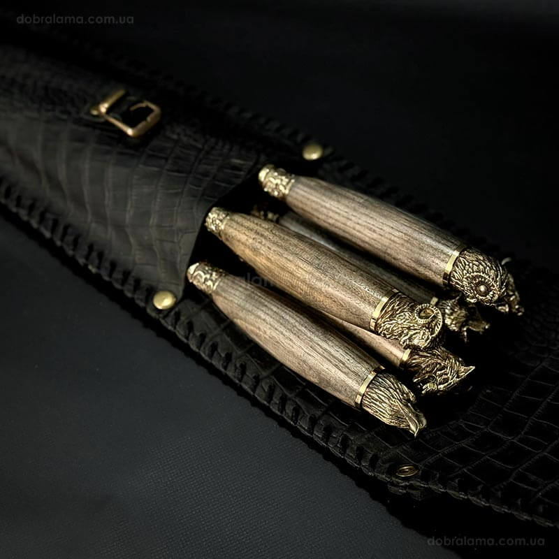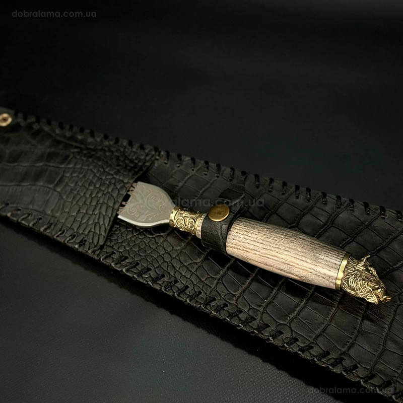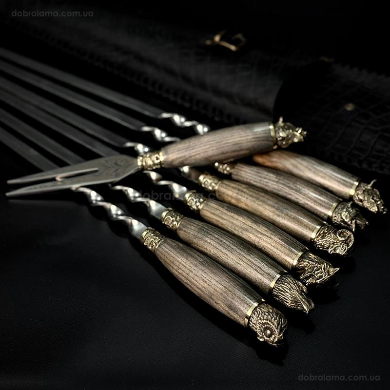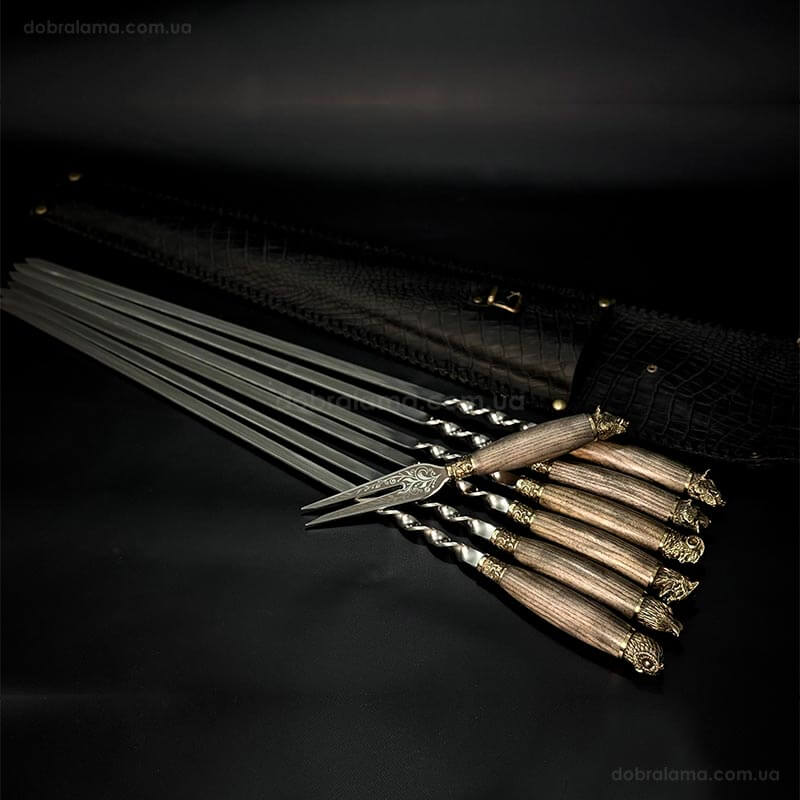 Набір шампурів «Мисливський ясен» з виделкою (в шкіряному закритому сагайдаку)