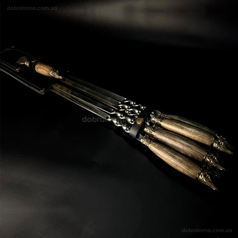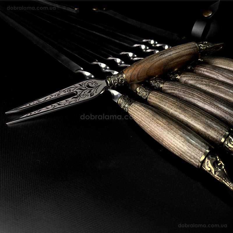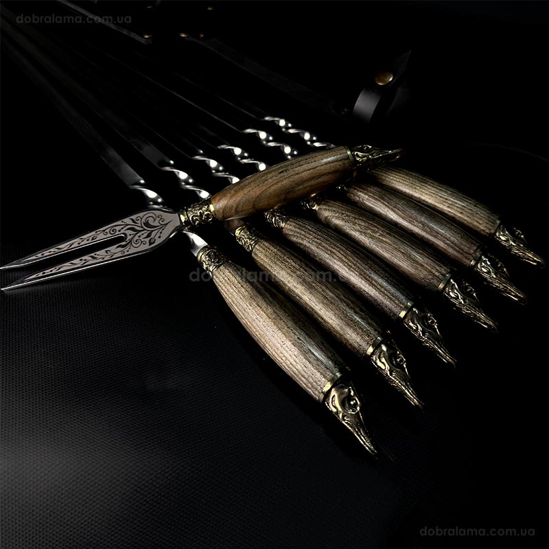 Набір шампурів «Щука ясен» з виделкою (у шкіряному сагайдаку)