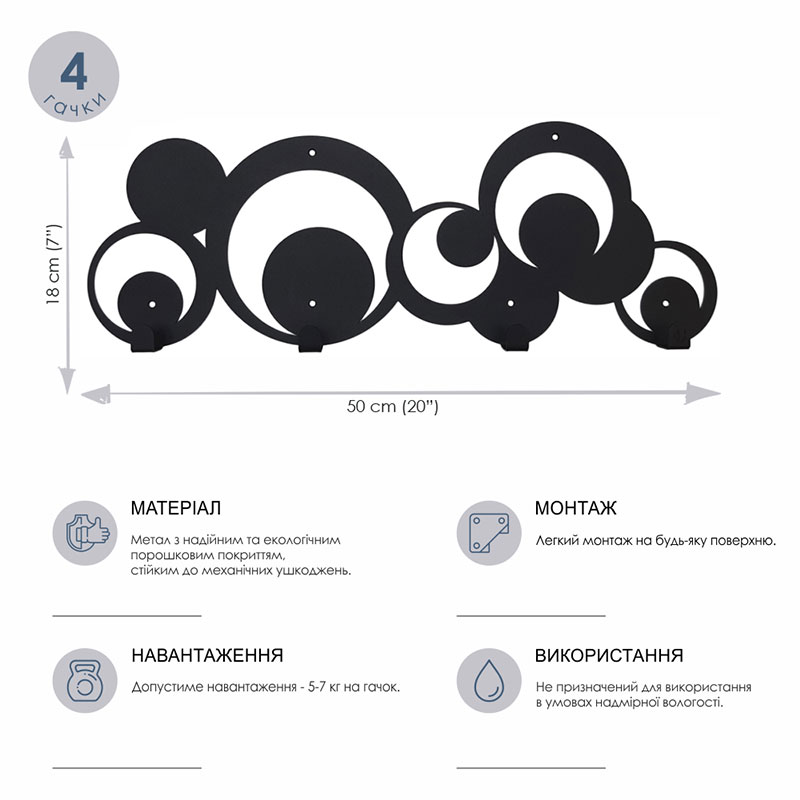 Настінна вішалка для одягу Disco (чорна), 50х18 см