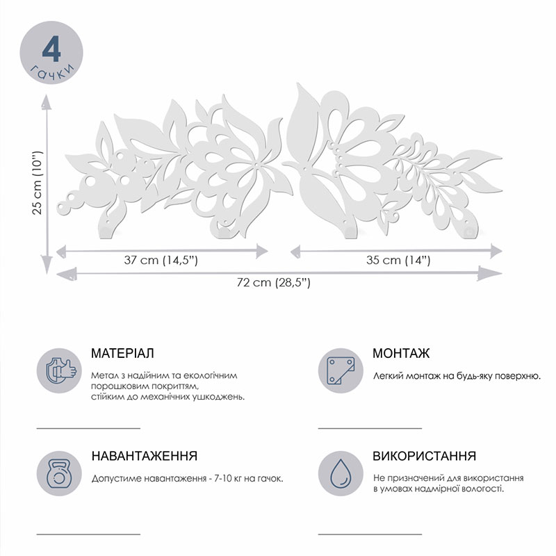 Настінна вішалка для одягу Folk (біла), 72х25 см