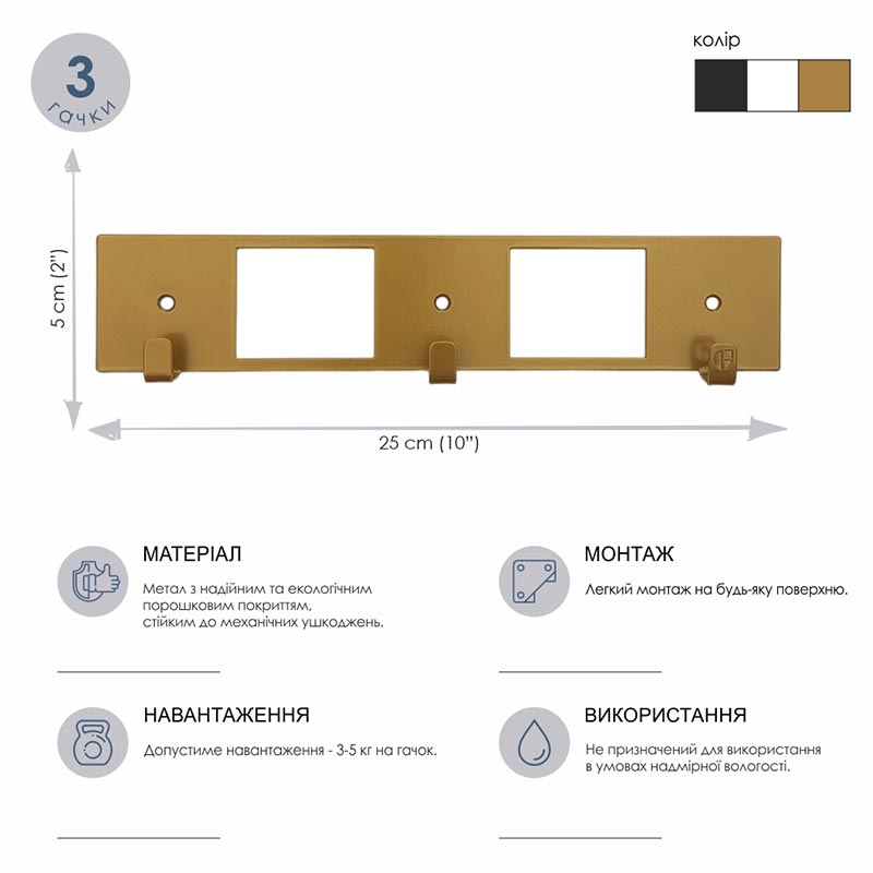 Настінна вішалка для одягу Kanto (бронзова), 25х5 см