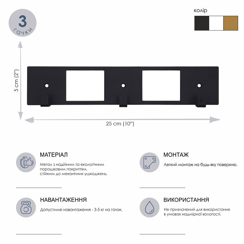 Настінна вішалка для одягу Kanto (чорна), 25х5 см