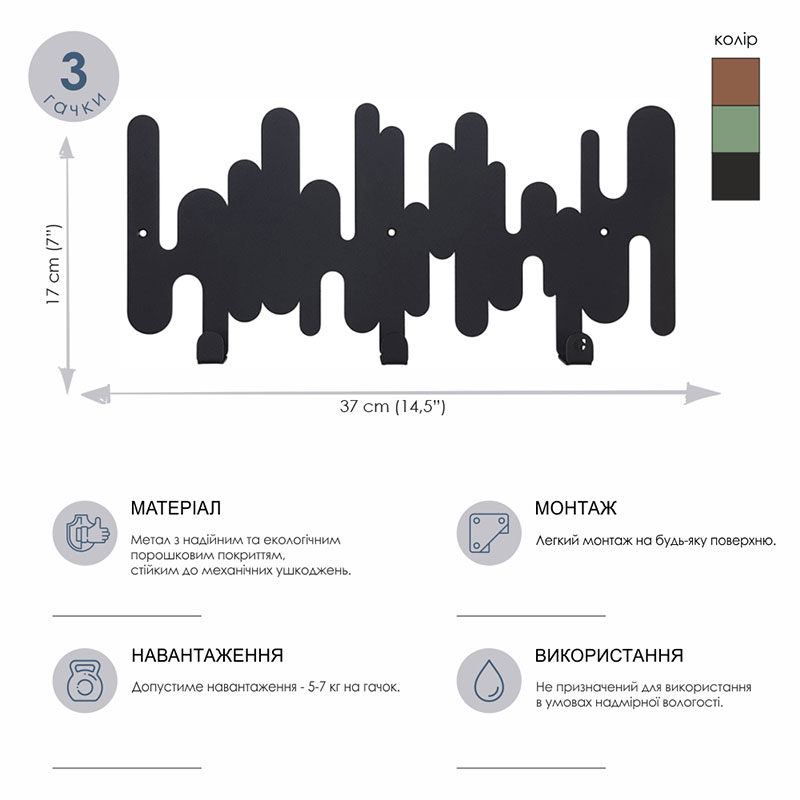 Настінна вішалка для одягу Rhythm (чорна), 37х17 см
