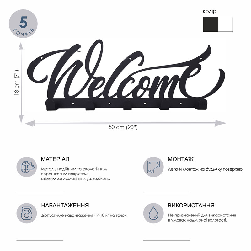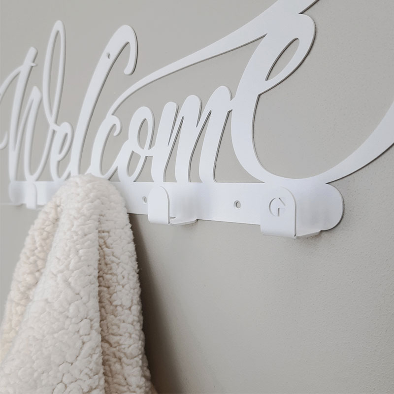 Настінна вішалка для одягу Welcome (біла), 50х18 см