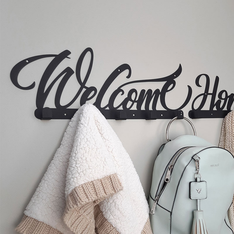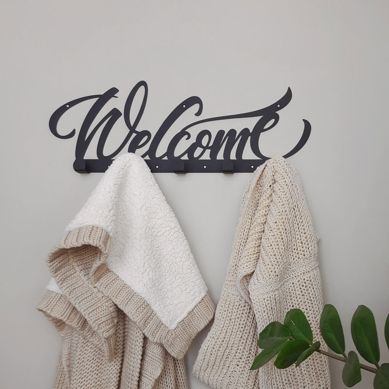 Настінна вішалка для одягу Welcome (чорна), 50х18 см
